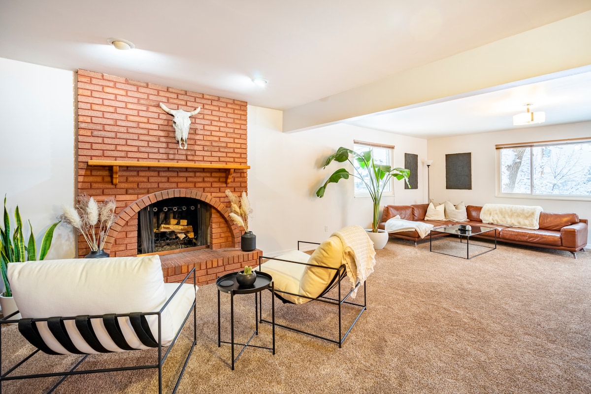 Maison de campagne paisible, ouverte, lumineuse et spacieuse ! Maison magnifiquement rénovée avec goût et décoration élégants. Jardin privé et patio. Emplacement central, à 12 minutes de l'UofU/Hôpital universitaire, à 25 minutes de Park City, à 10 minutes du centre-ville de SLC/Centre des congrès et à 15/20 minutes de Big/Little Cottonwood Canyon. Profitez d'une cuisine bien approvisionnée et détendez-vous dans la salle de bain de style spa. Profitez du ski, des montagnes, des parcs et des équipements de la ville à proximité. Jeux pour les familles et les enfants, PlayStation 5, Internet 1 G.