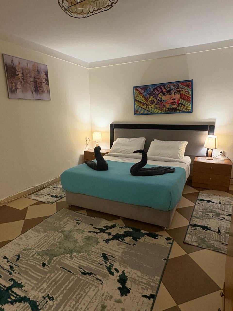 Bienvenue dans votre séjour idéal au Caire ! À seulement 13 minutes de l'aéroport du Caire, à 10 minutes du cinquième village et à 20 minutes du centre-ville. Cet appartement moderne et lumineux près du Nouveau Caire et d'Héliopolis est idéal pour les voyages d'affaires, les visites touristiques ou les escales. Profitez d'une connexion Wi-Fi rapide, d'une cuisine entièrement équipée et d'un quartier paisible : confort et commodité au cœur du Caire !