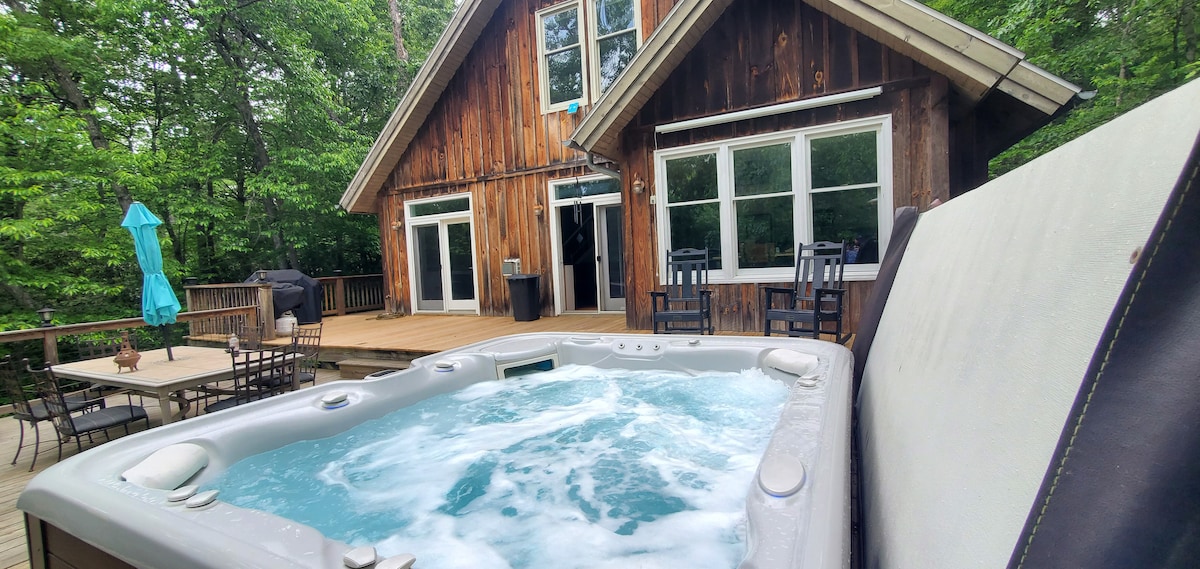 Un merveilleux chalet de montagne niché entre 2 ruisseaux en cascade. Détendez-vous sur la terrasse tout en profitant des sons des ruisseaux ou profitez de la vue magnifique sur la nature. La maison est à quelques minutes du parc d'État, des sentiers de randonnée et à 10 miles de la chaîne de montagnes Roan de 6 000 pieds et du sentier des Appalaches. À 30 minutes des pistes de ski et des belles villes de montagne. C'est le chalet idéal pour se détendre et se ressourcer. Cuisine complète et gril. WIFI et TV disponibles. Cette maison a tout pour une escapade parfaite en montagne.
