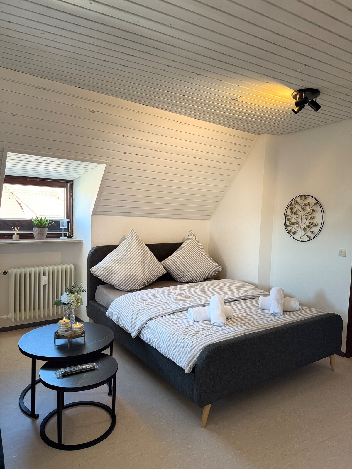 Profite d'une pause dans cet appartement calme et pourtant situé au centre. À seulement 10 minutes à pied du centre-ville, au cœur de la Haute-Souabe, tu trouveras tout ce dont tu as besoin. Une cuisine entièrement équipée, un siège extérieur avec possibilité de barbecue, un parking gratuit, un silence absolu pour dormir.
