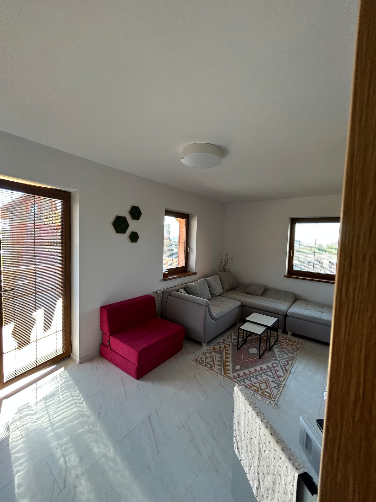 Bel appartement ensoleillé et élégant, à proximité du centre de Kezmarok. Il faut 5 minutes à pied pour accéder aux principaux sites historiques. L'appartement est situé au bord de la forêt et des pistes cyclables. Un petit quartier calme est équipé d'une nouvelle aire de jeux et d'un nouvel équipement d'exercice.