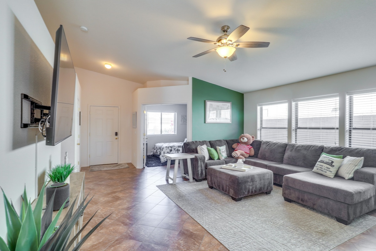 Bienvenue dans notre oasis du désert. Nous avons l'endroit idéal pour vous !! Profitez d'une journée au lac, d'un après-midi sur un Razor ou d'une nuit au casino, notre maison est l'endroit idéal pour profiter de la beauté du désert de l'Arizona. Profitez de Netflix sur une télévision de 80 pouces ou détendez-vous dans la piscine de volleyball (3,5 pieds de côté/5 pieds au milieu). Barbecue et dîner sous le patio couvert. Quartier convivial. Heures de calme : 22h-7h. Stationnement dans l'allée et dans la rue (pas d'accès au garage), stationnement latéral pour les Razor. Pas d'animaux de compagnie, INTERDICTION DE FUMER ! ABSOLUMENT PAS DE FEUX D'ARTIFICE !!