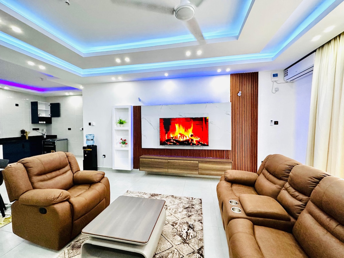 Un appartement élégant et paisible de 2 chambres à Nyali , Mombasa à côté de la plage. L'appartement est à quelques minutes à pied de la plage et il offre une vue imprenable sur l'océan depuis le balcon, entièrement meublé ; avec 2 chambres, cuisine entièrement équipée et un beau salon ouvrant sur un balcon avec une vue incroyable sur l'océan. L'appartement est situé au 4e étage et il se trouve à quelques minutes du centre commercial Nyali et du centre commercial de la ville