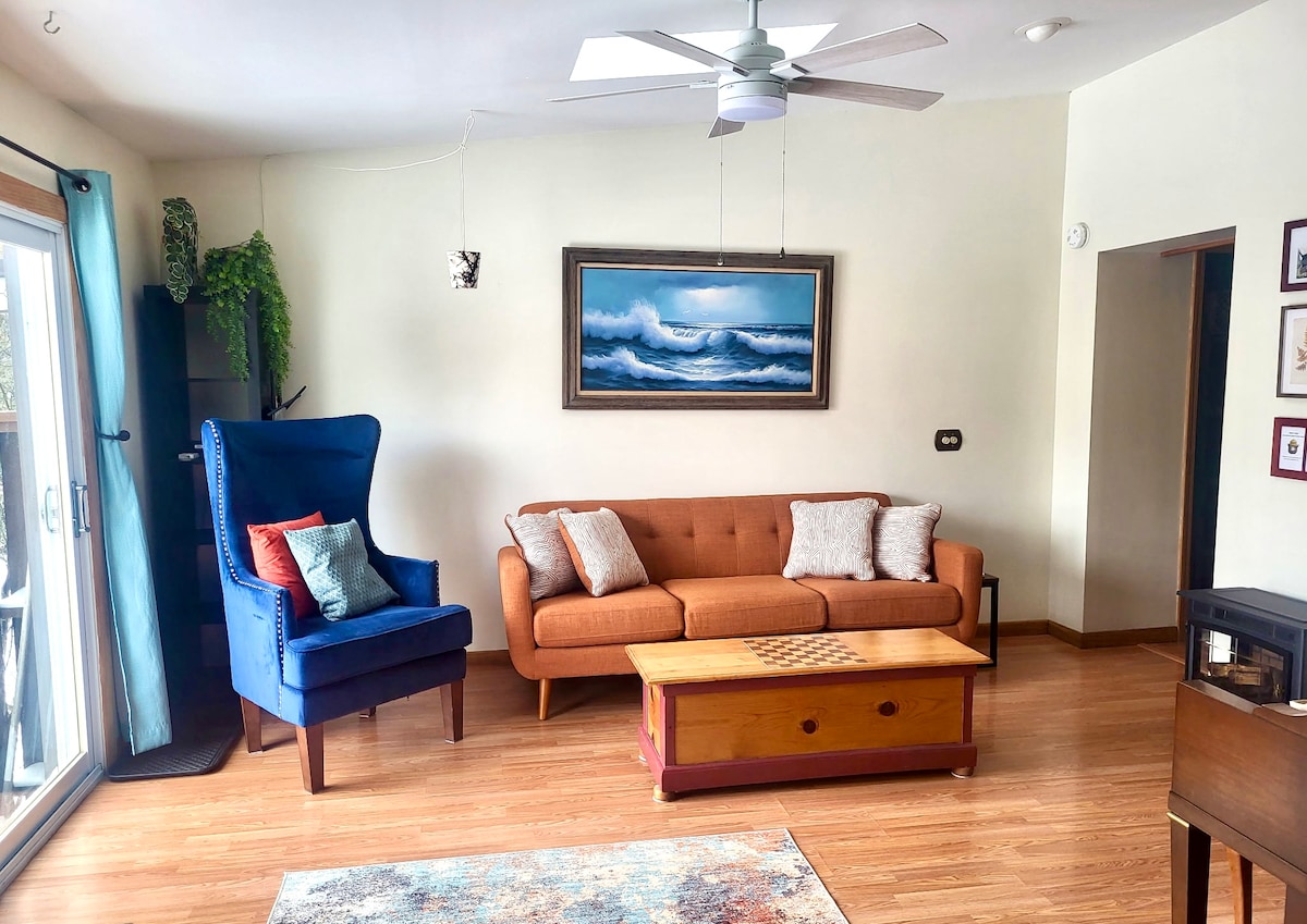 Si vous cherchez un endroit pour vous détendre avec style, ne cherchez pas plus loin. Confortable et esthétique, ce chalet rénové chic de 2 chambres se trouve à seulement dix minutes en voiture du centre-ville et à quelques pas de Seabreeze et du petit port de plaisance d'Irondequoit Bay. Il s'agit d'un cottage exploité par le propriétaire, pas d'une opération de gestion miteuse. Airbnb nous classe automatiquement comme une propriété « au bord du lac », mais il s'agit plutôt d'une propriété avec « vue sur le lac ». Pas d'accès direct au lac, mais vous pouvez le voir depuis le patio.