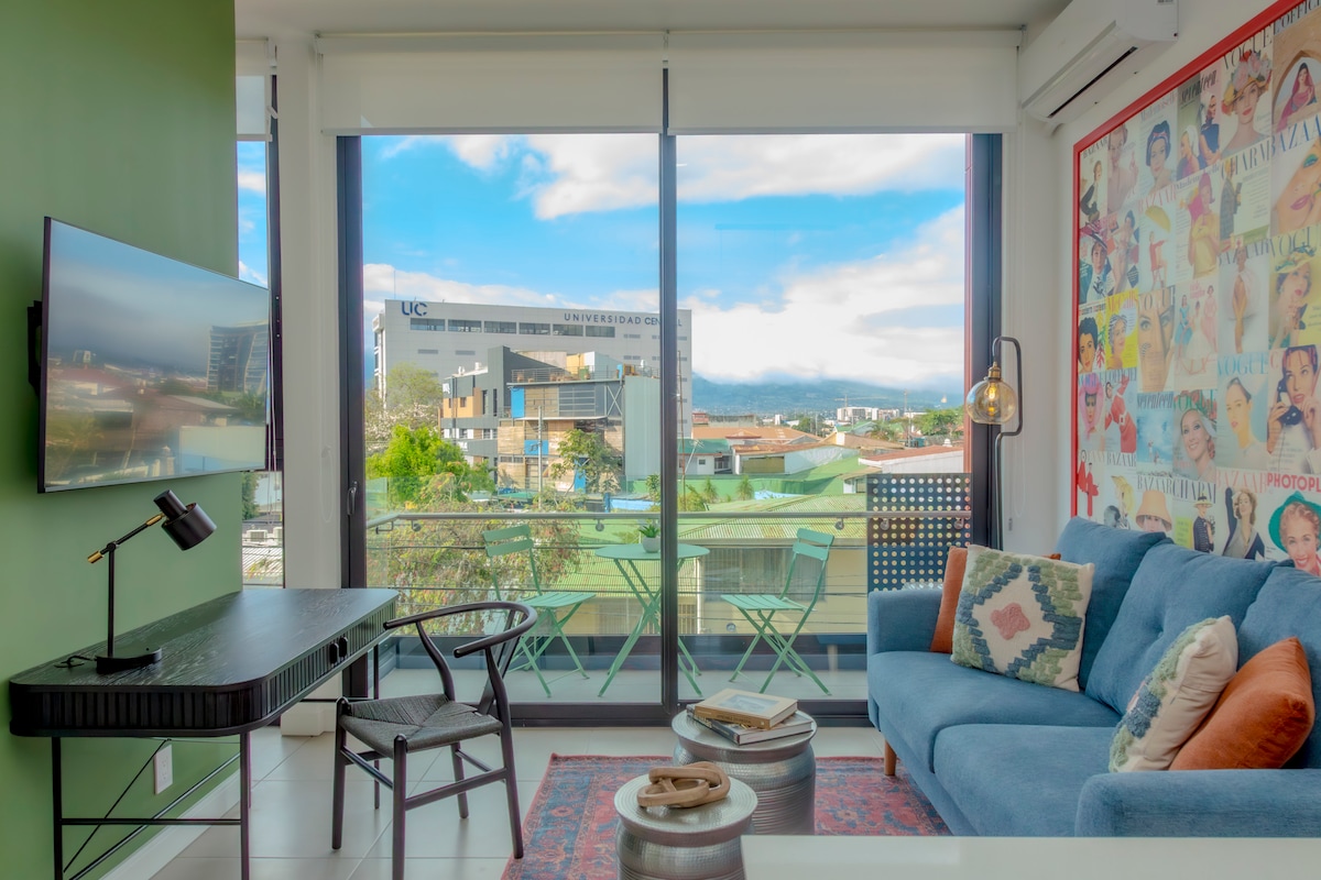 Discutons pour une arrivée anticipée GRATUITE Sécurité 24h/24 et 7j/7, SEUL immeuble avec stationnement pour une camionnette Levez-vous le matin jusqu'à la vue la plus magnifique sur le volcan Irazú, en profitant d'une tasse du café gastronomique costaricien le plus incroyable. Accédez aux équipements pour profiter d'une séance de détente dans le sauna ou le jacuzzi. Passez une journée de travail, puis sortez à 2 minutes à pied d'un délicieux restaurant, enfin chez vous, un lit queen confortable vous accueillera. Des tonnes de transports en commun disponibles, y compris une petite gare.