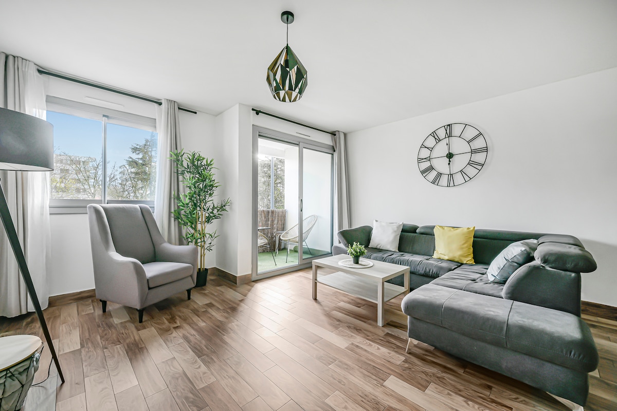 ★ Logement, au calme situé en zone pavillonnaire. En rez de jardin. ★Parking sécurisé gratuit dans la résidence ★Confortable et spacieux (50m2 +terrasse de 20m2). ★ Appartement lumineux avec vue sur un jardin. Grande terrasse zen. Services en + : séance photo, massage, hypnorelaxation ★ Commerces à 5 min à pied (boulangerie, boucherie, restos, Carrefour City..). Leclerc & Lidl à 8 min en bus /voiture. ★ Logement très bien équipé (lave-linge, lave-vaisselle, four, fibre optique...).