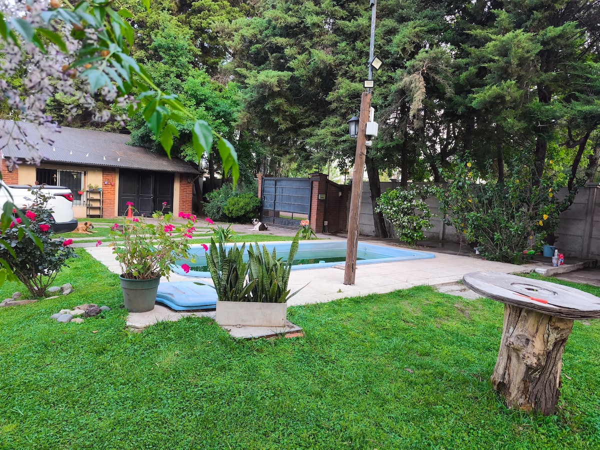 A 40 min de CABA. Casa Quinta privada con pileta, parque arbolado y horno de barro. Ideal para disfrutar en familia o con amigos, rodeado de verde y privacidad. Cuenta con cocina equipada, hogar a leña, Wi-Fi, aire acondicionado, Smart TV y cochera dentro de la propiedad. Hasta 6 huéspedes (más invitados durante el día con costo adicional). Vajilla y ropa de cama incluidas. Check-in 12 hs / Check-out 9 hs. Uso exclusivo — sin eventos.