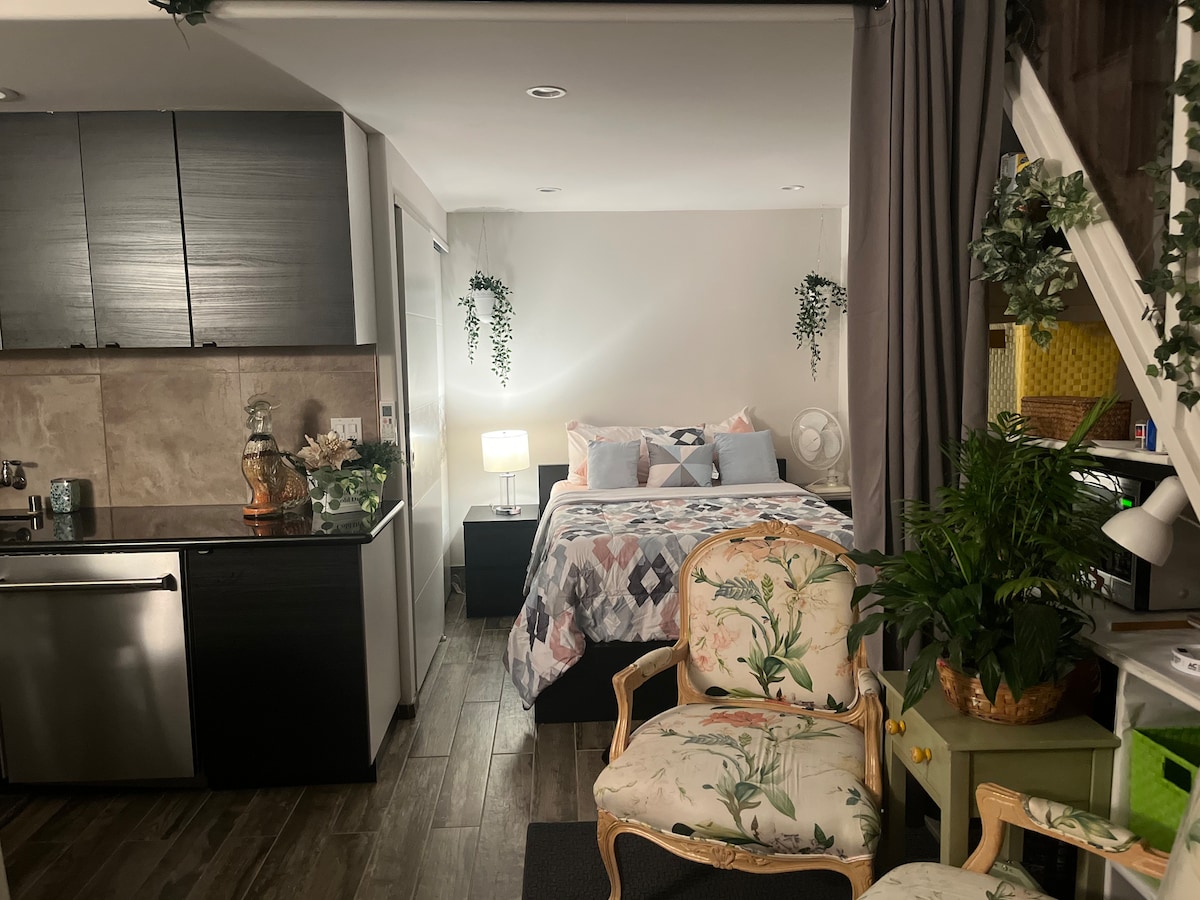 Notre studio moderne, mais PETIT et confortable, récemment conçu avec amour, est parfait pour les personnes seules ou les couples. Petit patio privé, parking avec portail sécurisé, cheminée électrique, bidet, douche à effet pluie, carrelage haut de gamme, miroir LED, Keurig, bureau, Wi-Fi puissant, cuisine entièrement équipée avec ustensiles et batterie de cuisine. À 8 min en voiture de l'aéroport SJC, à 7 min à pied des restaurants/bars de Japantown, à 13 min à pied de la SJSU et de l'hôtel de ville, à proximité de l'autoroute 87, du SAP Center, du San Jose McEnery Convention Center, de San Pedro Square et du cœur du centre-ville.