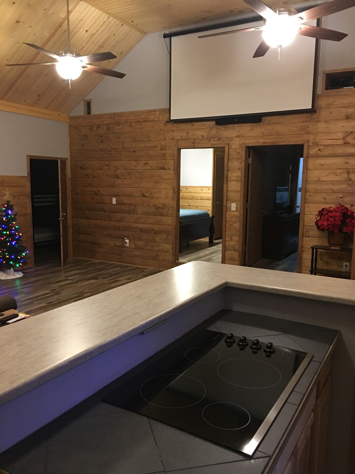Notre cabane amusante n° 3 mesure 120 pieds carrés, à peu près la taille d'une chambre standard ; cependant, elle comprend une salle de bain avec douche, une kitchenette, un coin lit mezzanine et un canapé futon qui fait un lit. Nous avons la télévision par satellite, une connexion Wi-Fi, la climatisation, des draps fournis, des ustensiles de cuisine et une grande terrasse avec un barbecue au propane. Nous disposons également d'une cour arrière avec un foyer et du bois fourni. Cette cabane est ouverte en saison d'avril à octobre chaque année.