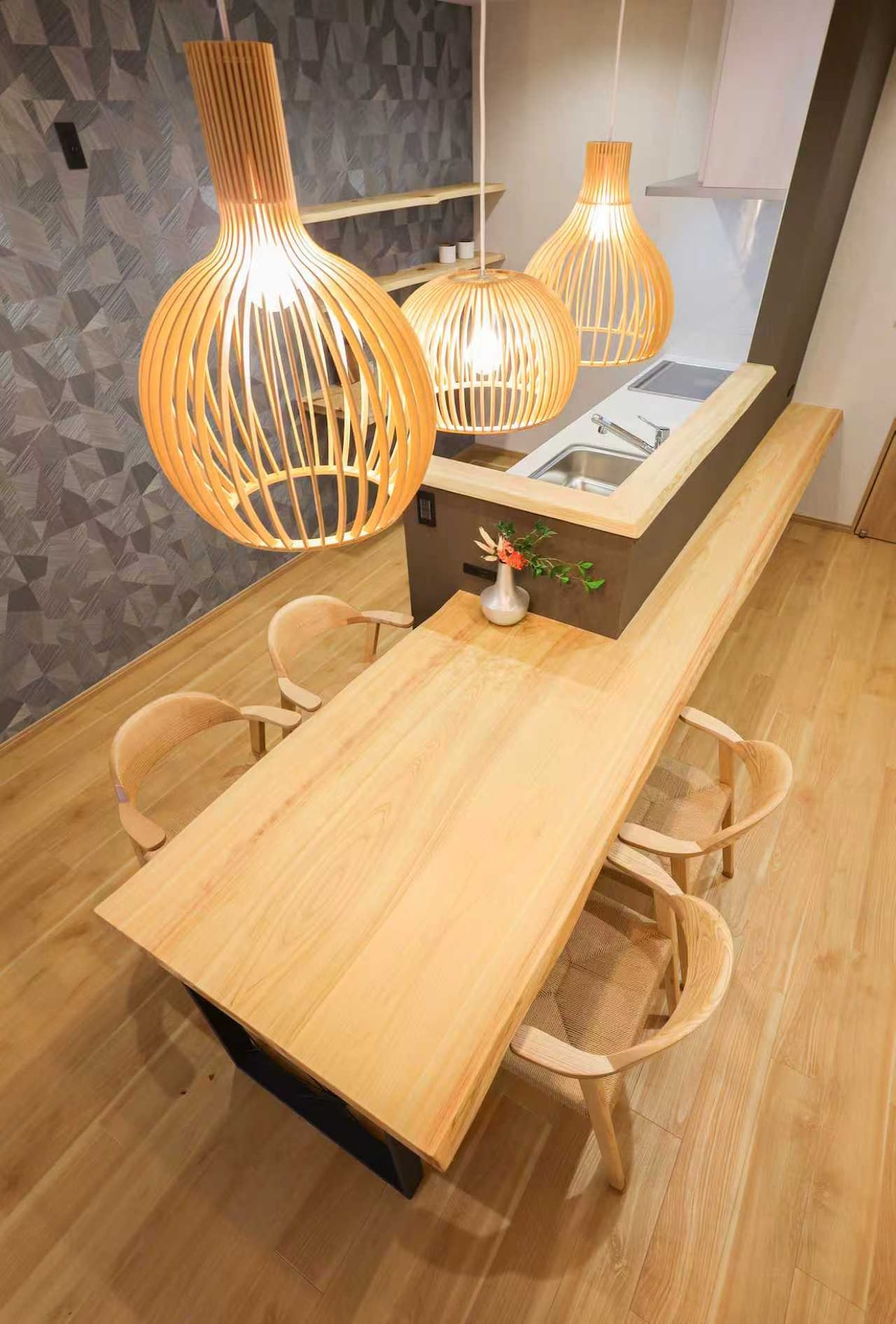 Idéalement situé à 10 minutes à pied de Kyoto Gyoen, « Suiten », qui est né en 2024, est un espace luxueux qui combine le charme d'une maison de ville de Kyoto avec une sophistication moderne. Cette auberge, conçue par le département d'architecture de l'Université de Kyoto, est une œuvre qui allie magnifiquement la tradition d'une maison de ville de Kyoto à l'élégance moderne. La vue à travers les grandes fenêtres offre une belle harmonie entre la nature et l'architecture. Cet espace unique, où vous pouvez ressentir un sentiment d'unité avec le paysage urbain ancien, offre une expérience exquise qui allie la tradition d'une maison de ville de Kyoto à l'élégance moderne. Un moment de 🛋 luxe Matinée : Commencez la journée en vous relaxant et en toute élégance avec le café Nespresso. Nuit : profitez d'un moment spécial avec de délicieux plats préparés dans une cuisine professionnelle et des films dans un home cinéma. 🛏 Équipements. 2 lits simples, 1 canapé-lit, 1 futon, lit bébé disponible (4 adultes) Le mobilier de haute qualité et les équipements sophistiqués en font un lieu idéal pour les séjours longue durée. ✨Emplacement Kyoto Gyoen est à 10 minutes à pied Shijo Karasuma est à 15 minutes à pied Bon accès à Gion, au marché de Nishiki, à Arashiyama et à Fushimi Inari Taisha Après la visite, profitez d'un séjour spécial à « Saeten » où vous pourrez vous adonner à un environnement calme et à un espace luxueux, et ressentir le charme de Kyoto avec les cinq sens.