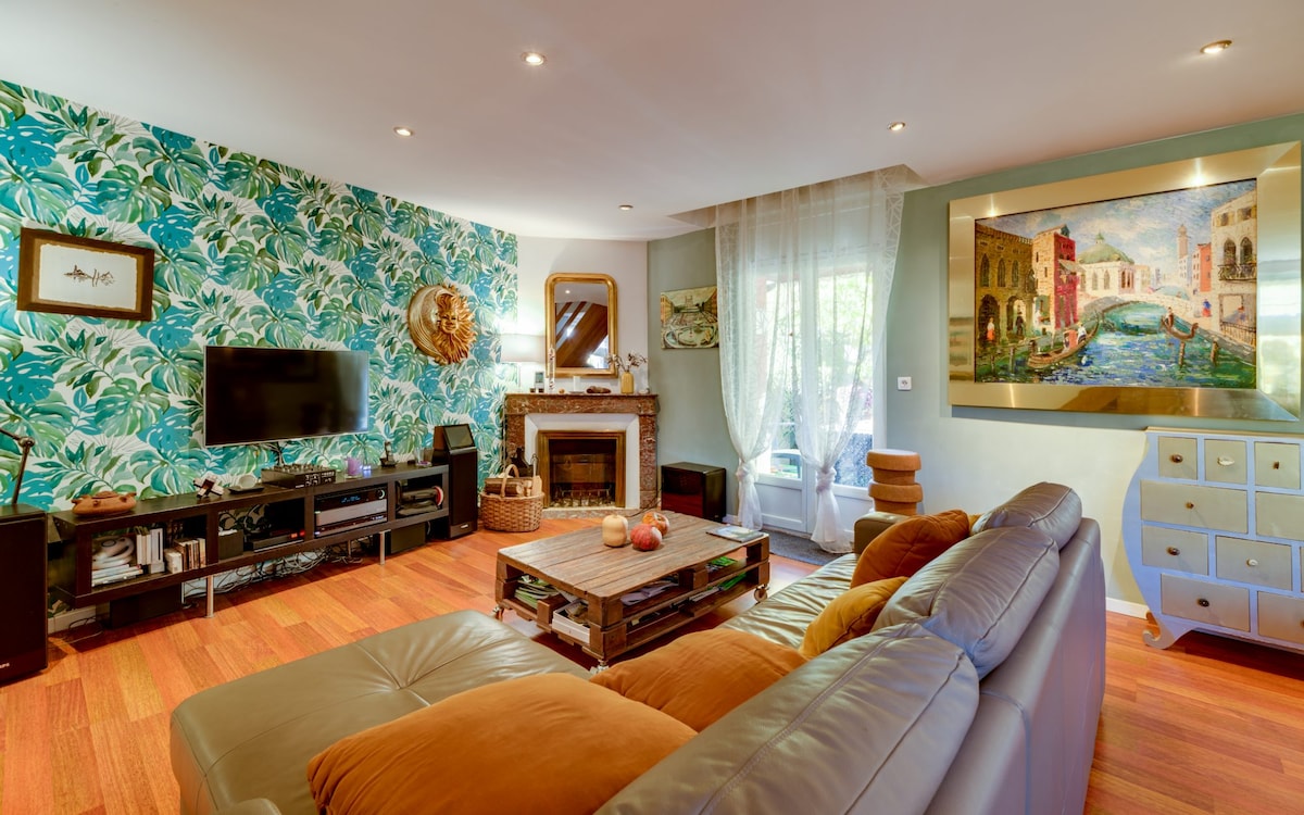 🌿 Détendez-vous dans ce logement calme et élégant. 60m2 de confort dans un décor bohème chic en rez-de-jardin avec terrasse et parking privés. 🌼 🌳Dans un cadre verdoyant et cosy, loin de l'agitation du centre-ville mais assez proche (15 mm) vous pourrez bénéficier des avantages de notre belle ville de Nancy. 🏰 Ce logement lumineux de plain-pied, tout équipé a une vue directe sur le jardin arboré ⚘️ et la terrasse aménagée. ☀️ Posez vos bagages et profitez ! Carpe Diem ! 😊