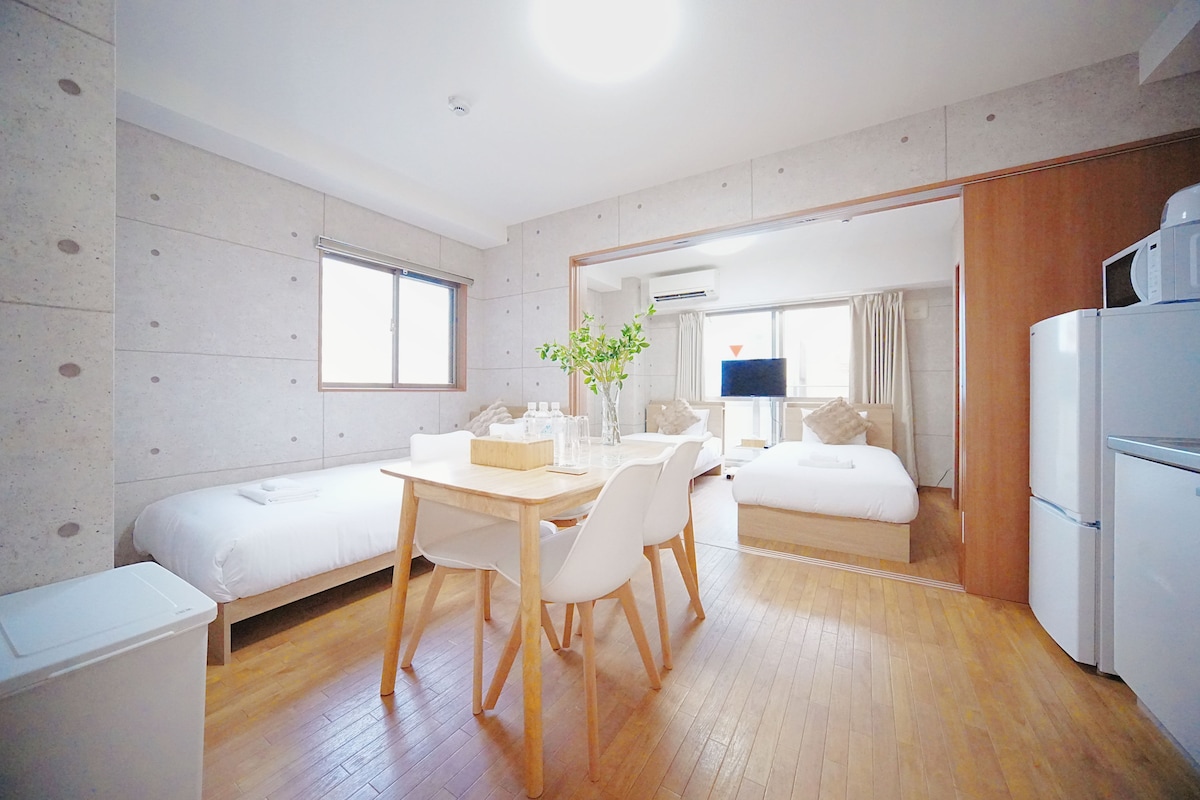 Nihonbashi B&B Chambre 2 dans le ciel ; 3 chambres 1 salon avec chauffage au sol 2 toilettes 2 salles de bain 2 lavabos / à distance de marche de Shinsaibashi / Dotonbori / marché de Kuromon / gare de Nihonbashi et gare de Namba