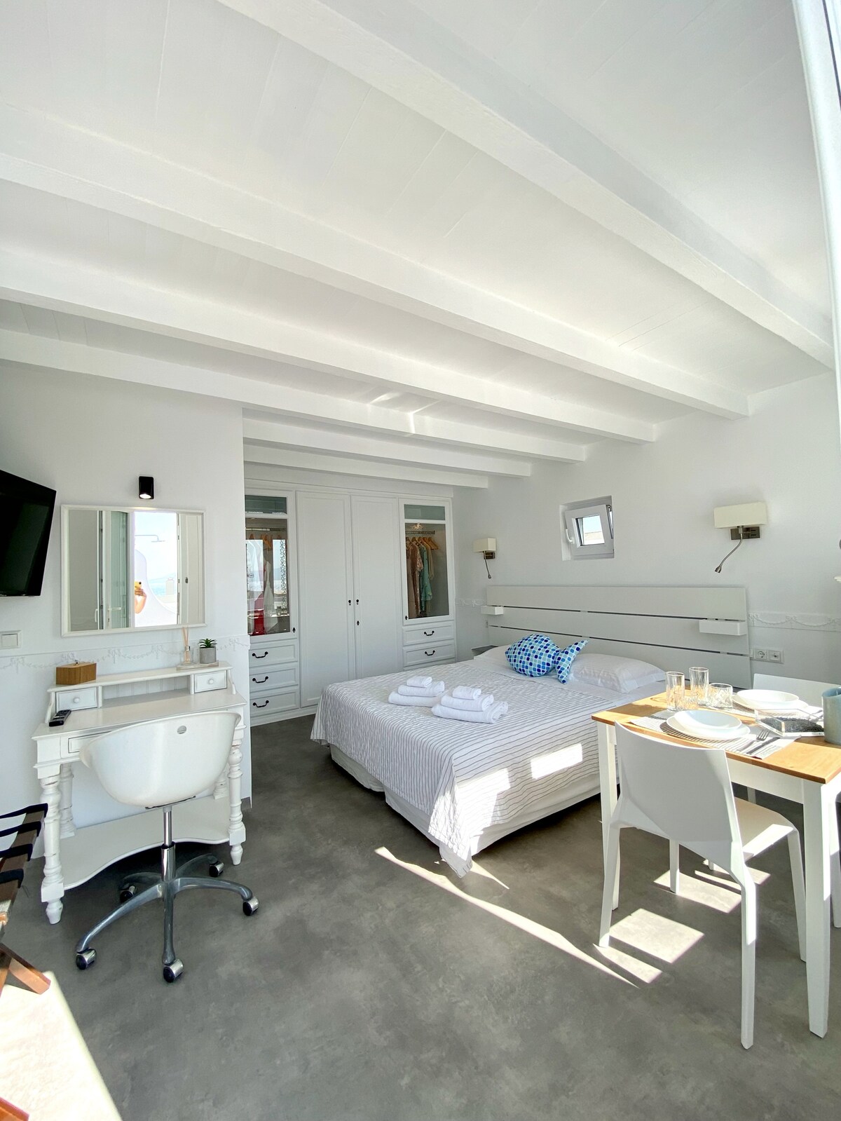 Magnifique studio penthouse dans un emplacement privilégié à Parikia, à seulement 5 minutes des plages, des restaurants et des commerces. Entièrement équipé, avec une chambre spacieuse, une salle de bain et une cuisine-salon ouverte, menant à une terrasse privée de 75 m², avec une vue magnifique sur la baie, la mer et le paysage montagneux. Idéal pour les bains de soleil, le café ou les après-midi romantiques avec un verre ou du vin et un coucher de soleil inoubliable. Profitez de l'hospitalité et des saveurs uniques de Paros dans un lieu qui réunit tout cela !
