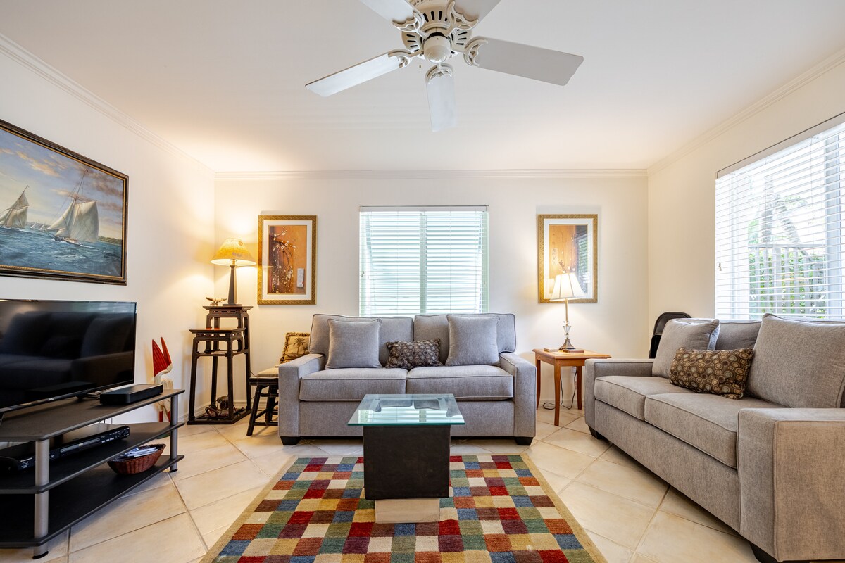 À distance de marche de la plage et des restaurants gastronomiques. Appartement au premier étage avec beaucoup de lumière naturelle : expositions nord, sud et est. Belle piscine juste devant la porte d'entrée. Parking privé ombragé en dehors de la rue à côté de l'unité. Vous adorerez cette maison en Floride.