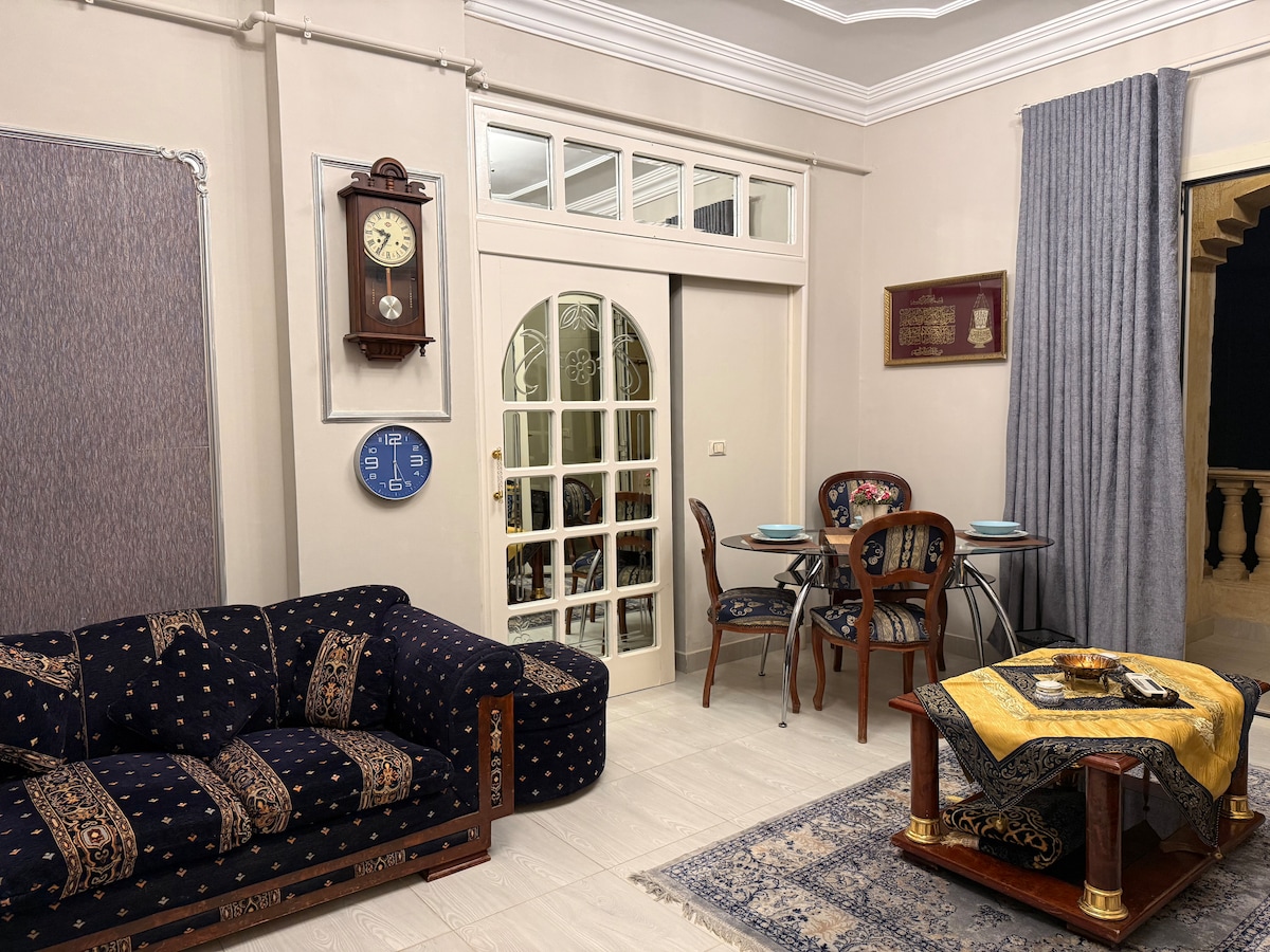 Bienvenue dans notre duplex luxueux et chaleureux ! Cette retraite artistique unique et spacieuse dispose de quatre chambres, dont deux disposent d'une salle de bain attenante. Niché au cœur du Nouveau Caire, l'un des quartiers les plus chics — Gharb el Golf – West el Golf Katameya — il offre un emplacement privilégié à proximité de Katameya Heights, réputé pour son terrain de golf, ses bars et ses restaurants.