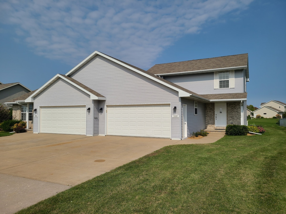 Entrée latérale privée au rez-de-chaussée avec de grandes fenêtres avec lumière naturelle, salle de bain privée avec articles de toilette, buanderie avec lave-linge/sèche-linge, salle familiale privée avec canapé, télévision avec Hulu, sans fil, micro-ondes, cafetière, eau en bouteille et mini-réfrigérateur. Vous avez tout l'étage pour vous, car nous vivons à l'étage. La maison est située dans un quartier calme de la campagne. Cerfs, oiseaux et autres animaux sauvages sont des visiteurs quotidiens. Accès facile en voiture au Lambeau Field, à l'aéroport et au centre-ville de Green Bay !