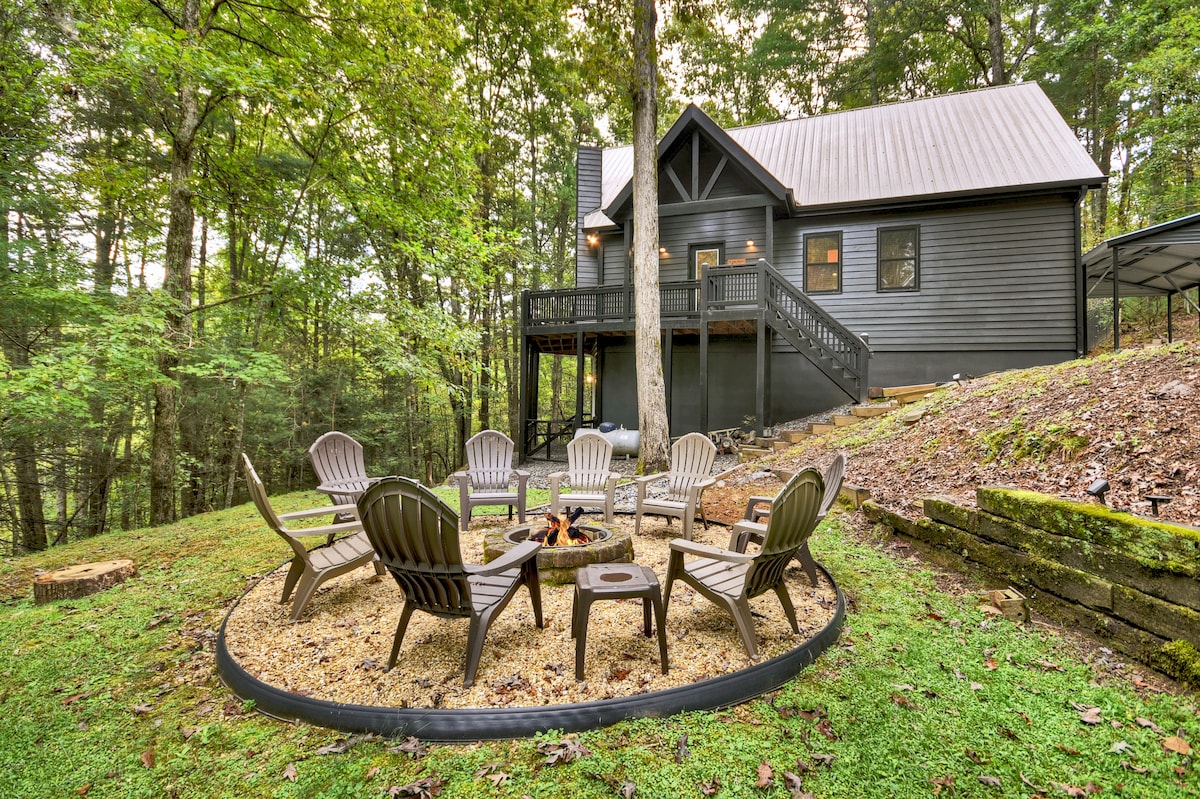 À moins de 3 miles du centre-ville d'Ellijay. Wifi rapide et routes plates ! « Stay Awhile » est l'endroit où nous nous balançons sur les balançoires de la véranda, rions dans le porche grillagé et dégustons des s'mores près du feu. Il s'agit de se détendre et de profiter les uns des autres. La maison est aménagée pour les petits et les grands enfants. Emplacement idéal pour faire de la randonnée pédestre, du VTT, du tubing sur la rivière, du shopping, des visites touristiques, des dégustations de vins locaux ou pour passer des journées d'automne à cueillir des pommes dans les vergers voisins.