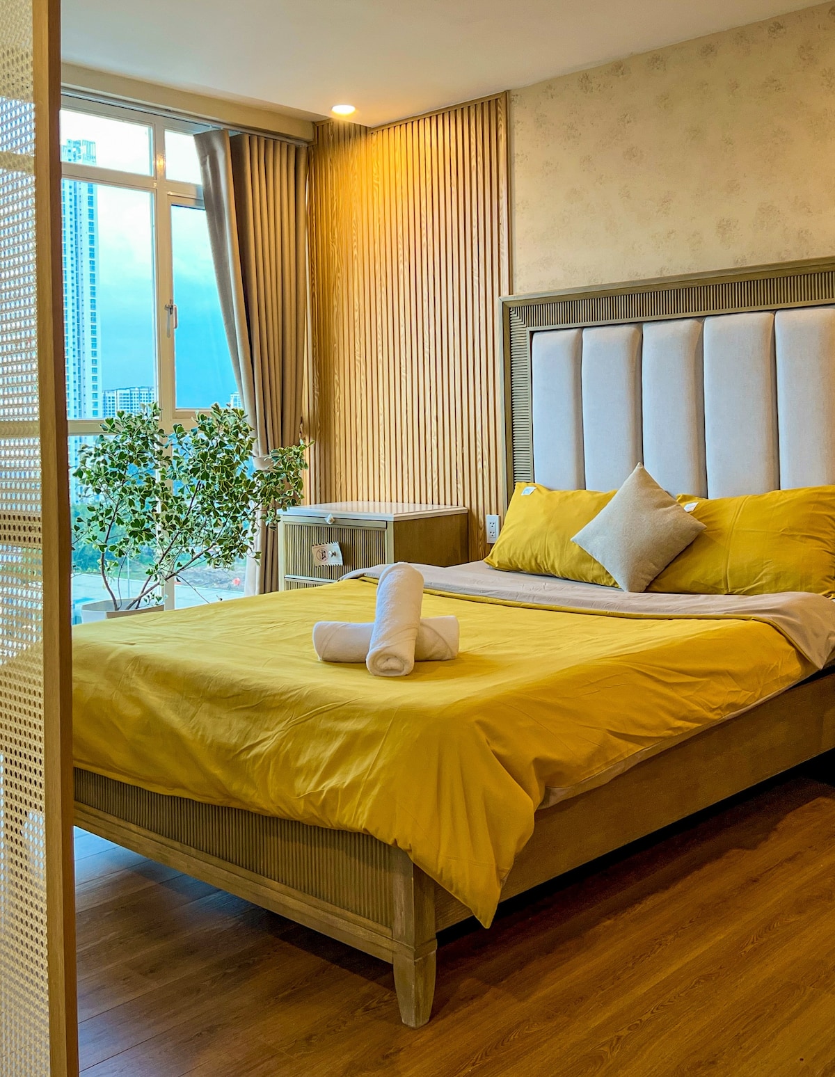 Si vous vous sentez seul ou si vous avez besoin de repos. Je pense que cette maison est votre excellente option. vy-designing des étagères de l'appartement selon l'indochine. Cette maison vous fera vous sentir dans le luxe - Canapé relaxant. Matelas moelleux. La piscine sur le toit au 35e étage offre la meilleure vue sur la rivière. Vous pouvez vous détendre avec de la musique avec vos amis et faire un barbecue sur le toit. Sauna et salle de cinéma pour 10 personnes. C'est comme un appartement de villégiature situé en plein cœur de la ville.