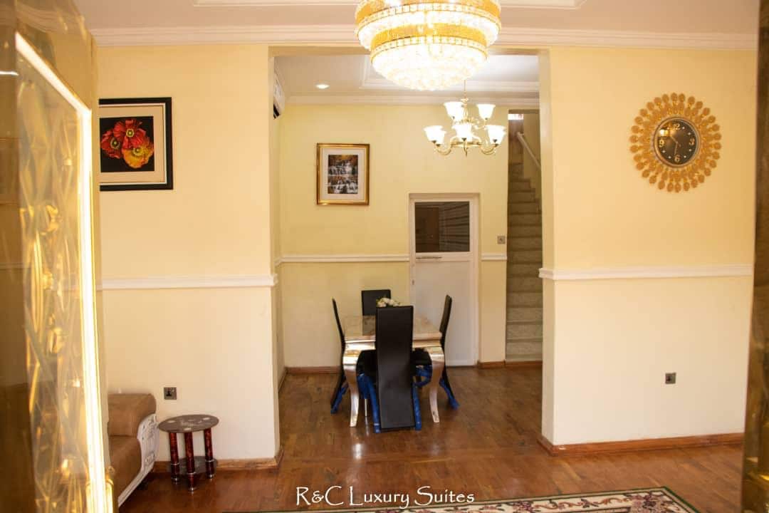 Espace de 2 chambres élégamment meublé avec salon(télévision par câble, home cinéma, wifi), mini salle à manger, salle de bain 2,5, cuisine équipée avec tous les équipements et équipements de cuisine. Il a une sonnette vidéo et se trouve dans un complexe fermé sécurisé,accessible uniquement par un portail télécommandé. Le logement est situé dans River Park Estate, à 20 minutes du centre-ville d'Abuja et à environ 10 minutes de l'aéroport international.