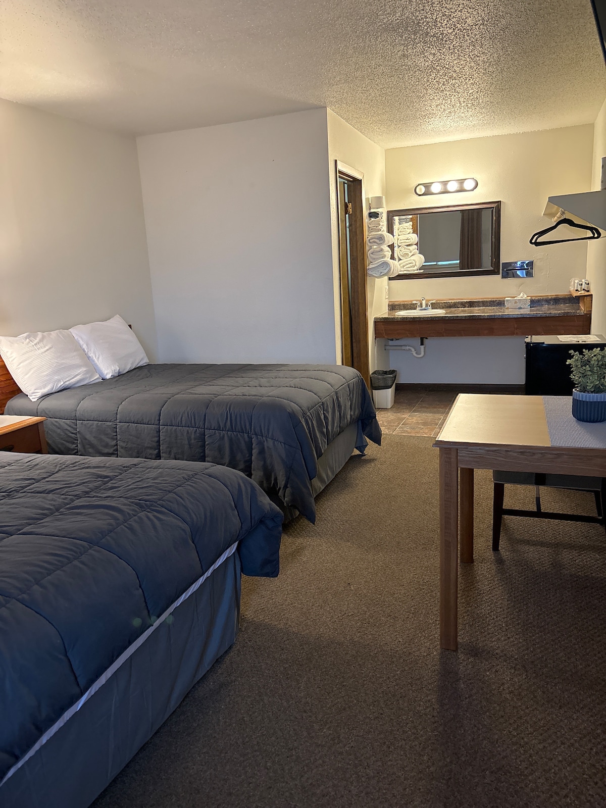 Récemment rénovée avec des finitions modernes et des sols en vinyle élégants, cette spacieuse chambre double Queen est conçue pour le confort et la facilité. Les hauts plafonds et la grande fenêtre remplissent la pièce de lumière naturelle, tandis que les stores occultants offrent de l'intimité et une nuit de sommeil paisible. Situé au rez-de-chaussée, l'unité 3 dispose d'une entrée extérieure privée pour un accès rapide et facile. Cette chambre non-fumeur accepte les animaux de compagnie (chiens uniquement), avec des frais de 40 $ par animal et par séjour, car vos amis à fourrure méritent aussi une escapade.