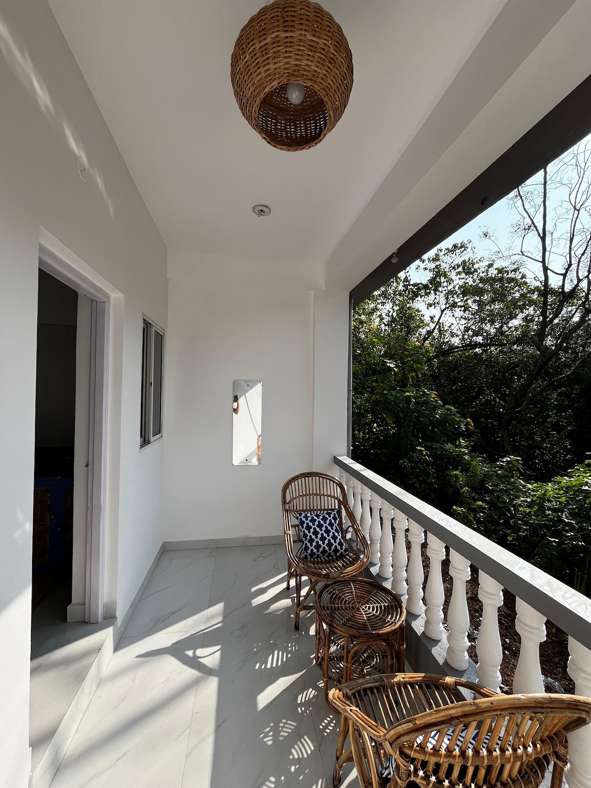 Une chambre avec balcon dans une auberge de jeunesse près de la plage de Mandrem