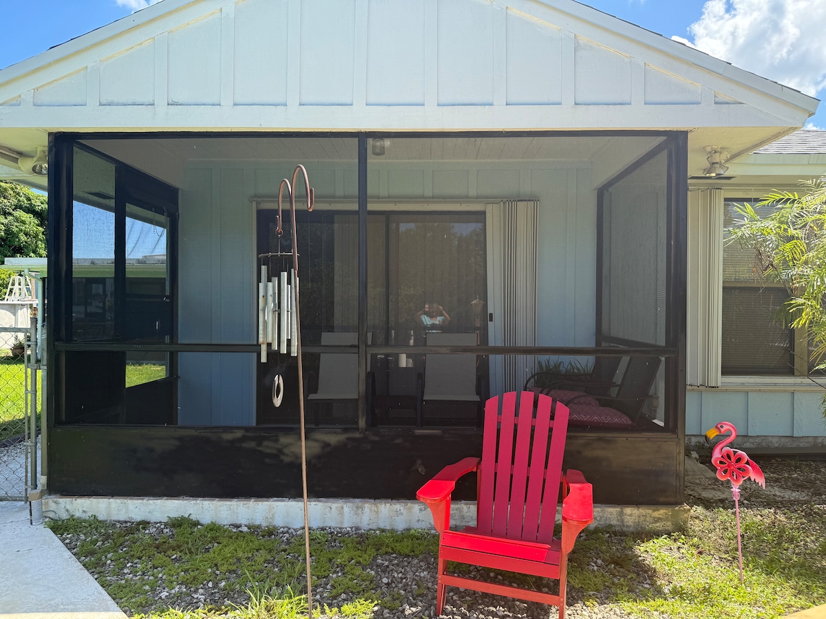 Installez-vous confortablement dans ce chalet situé au centre. Situé à quelques minutes des plages, du centre-ville de West Palm Beach, de l'aéroport, du zoo, du musée des sciences et plus encore. Avec une cour entièrement clôturée, vous pouvez vous sentir à l'aise en laissant votre ami à quatre pattes se promener pendant que vous sirotez votre café du matin sur le patio avant ou que vous prenez un bain de soleil dans le hamac. Profitez d'une connexion Wi-Fi rapide et gratuite, de téléviseurs intelligents dans le séjour et la chambre, d'un grand dressing, d'une douche spacieuse et des essentiels de plage fournis.