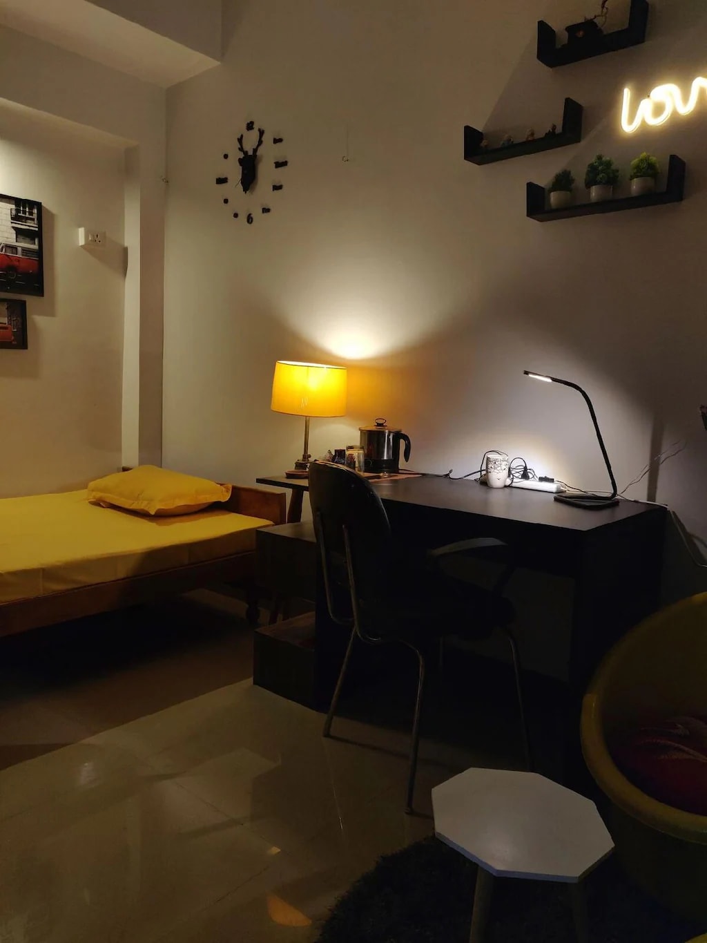 Studio by ATTICA is a cozy studio home, perfect for couples and small families. It features a comfortable bedroom with a small table top kitchen and private external washroom (about 6-7 steps). Location access: Paltan Bazaar : 1.3 km (4 min) Railway Station: 1.8 km (8 min) Cancer Hospital : 2.8 km (9 min) Apollo Hospital : 5 km (14 min) City Centre: 6 km (15 min) Kamakhya Temple: 10 km (25 min) Airport: 24 km (45 min) Local markets, ATM and major hospitals are all within easy walking distance.