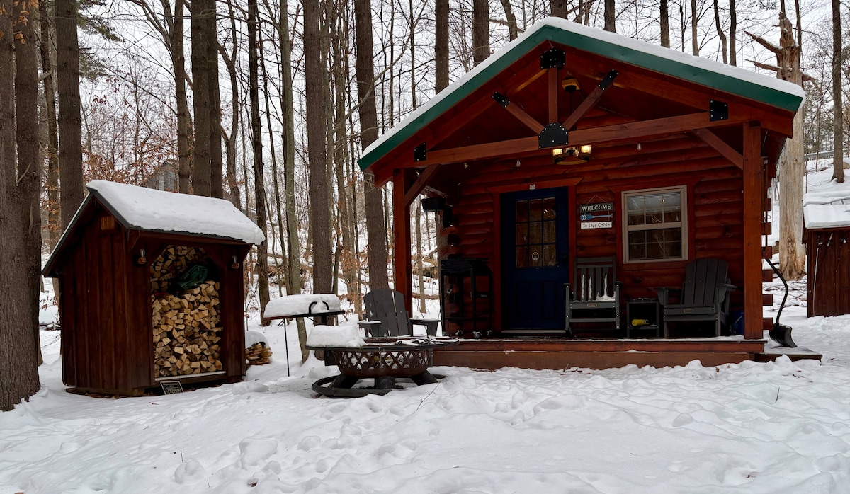Venez vous détendre et profiter de cette cabane confortable ! Niché dans les bois, ce chalet privé dispose d'une chambre, d'une salle de bain et est situé sur la rivière ! Nous fournissons des raquettes à nos voyageurs pour explorer la propriété, ainsi qu'un foyer privé juste à l'extérieur du chalet ! Profitez du sentier privé de 800 mètres à quelques pas de la cabane ! Excellent pour la raquette en hiver ! Centre de ski nordique de Lapland Lake - à 10 minutes ! Oak Mountain : 20 minutes Montagne Gore - 35 minutes