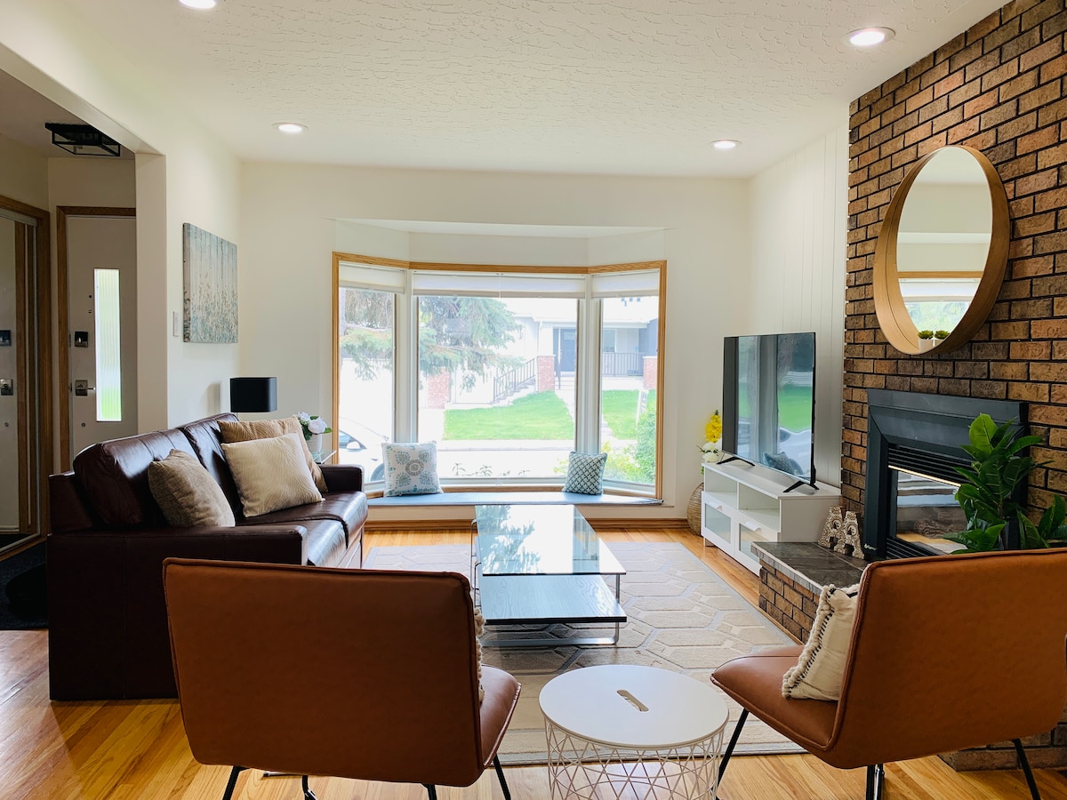 Plus de 1🏡🏠 200 pieds carrés d'espace de vie ❎🧹Pas de frais de ménage À ⛰️ 1 heure de route des montagnes ☀️ 🌞 Plein de lumière naturelle Contrôles de température🥵🥶 séparés Buanderie 🧺🧼dans la suite. 👨🍳Cuisine équipée avec lave-vaisselle Entrée 🚪🔐privée et séparée 🔑Arrivée sans contact ⏰ Distance jusqu'à Winsport - 14 minutes Aéroport YYC : 30 minutes Centre-ville - 25 minutes Sobeys - 8 minutes Tim Hortons, station-service, A&W - 6 minutes Superstore - 12 minutes