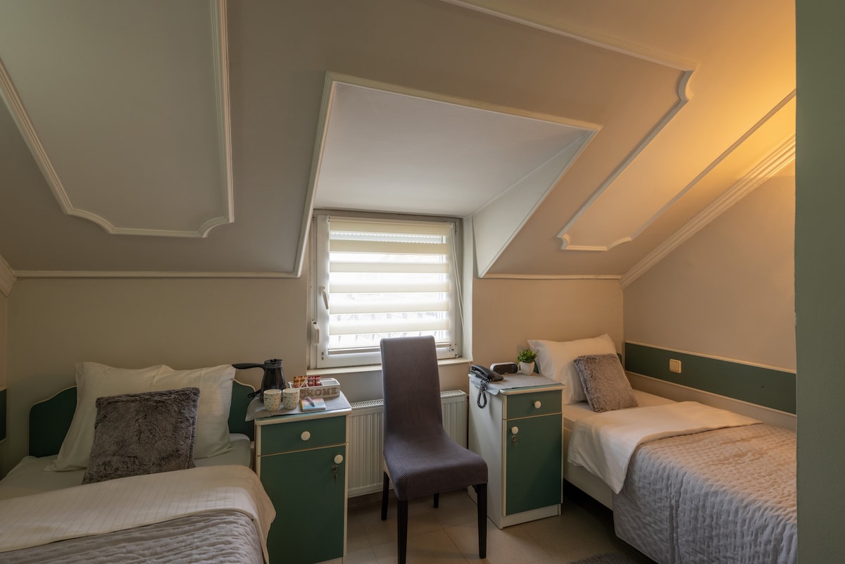 Bienvenue dans notre chambre avec deux lits séparés ! La chambre est parfaite pour les amis, les collègues ou les voyageurs en solo à la recherche d'un séjour confortable et agréable. La chambre est équipée de deux lits confortables, d'une connexion Wi-Fi gratuite, d'une télévision et de la climatisation. Les voyageurs ont accès à une salle de bain privée avec tous les articles de toilette nécessaires. Un copieux petit-déjeuner buffet est inclus dans le prix, ainsi qu'un parking gratuit pour tous les clients de l'hôtel. Les environs paisibles garantissent des vacances parfaites.