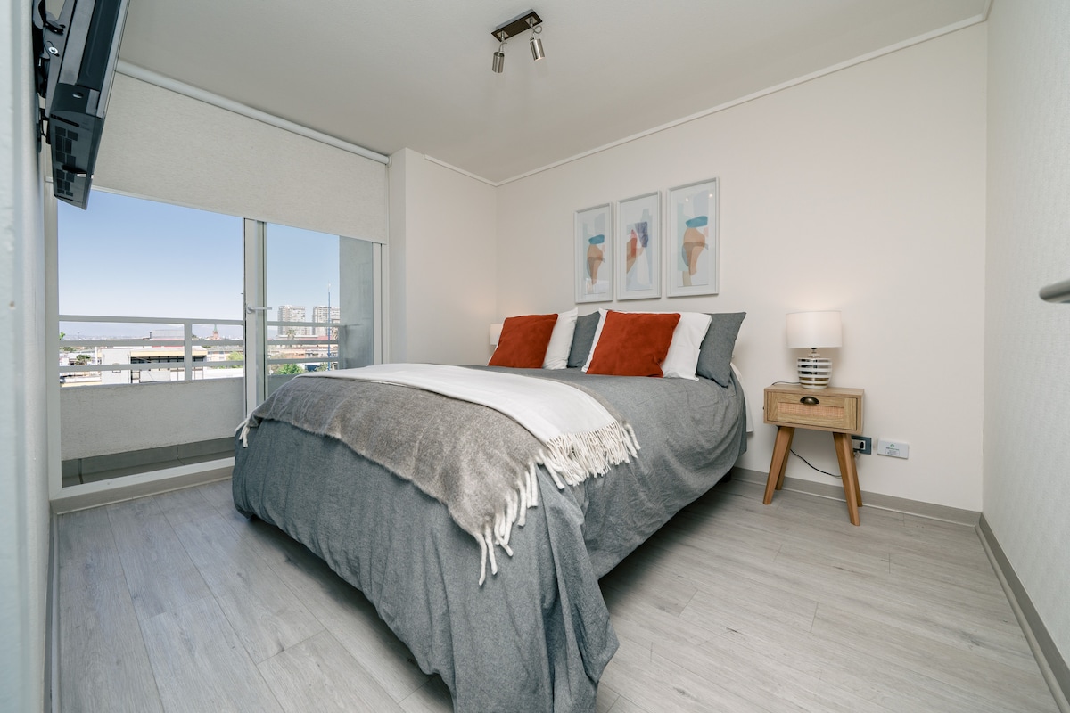 Profitez d'un séjour confortable dans cet appartement moderne et spacieux d'une chambre et d'une salle de bain, situé au 9ème étage de l'immeuble Casa Bustamante, en face du parc Bustamante, offrant une vue dégagée vers l'ouest, équipé de fenêtres thermopanel, cuisine entièrement électrique avec plan de cuisson vitrocéramique, four, hotte et couvercle en quartz blanc. À seulement 1 minute à pied 🚶🏻♂️🚶🏼♀️du métro 🚇 irarrazabal, vous aurez un accès très facile pour explorer la ville et ses environs.