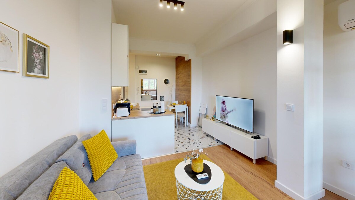 Découvrez le confort moderne dans ce loft lumineux de 51 m² près du parc Borisova gradina et du pont de l'Aigle. Profitez d'une décoration vibrante, de touches de bois et de deux lits polyvalents (90x200cm). Parfaitement situé, vous êtes à quelques pas des principales attractions de Sofia, avec un accès facile aux transports en commun. - Télévision Android rotative avec Netflix - Purificateur d'air avec filtre HEPA - Cuisine entièrement équipée - Wi-Fi haut débit (91 Mbps) - Bâtiment neuf et bien entretenu. Réservez dès maintenant pour profiter pleinement de Sofia !
