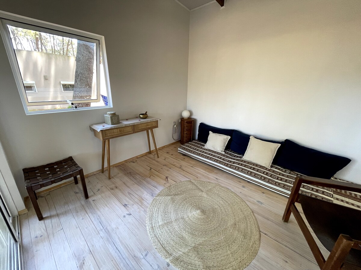 Suite vue plage , forêt & ruisseau du Potrero. Plaisir et détente. Studio avec sa propre terrasse pour 2 personnes. Parking privé Wi-Fi fibre optique Antel 500 mbps descente et 40 montée Détendez-vous dans ce logement unique et calme, à 10 minutes de l'aéroport Laguna del Sauce. Prosegur dans chaque suite. Ce sont deux sommiers 90 x 1,90 qui sont armés ensemble avec pillow top, ou peuvent être assemblés individuels sur demande. Vous pouvez également demander un matelas supplémentaire en payant un supplément