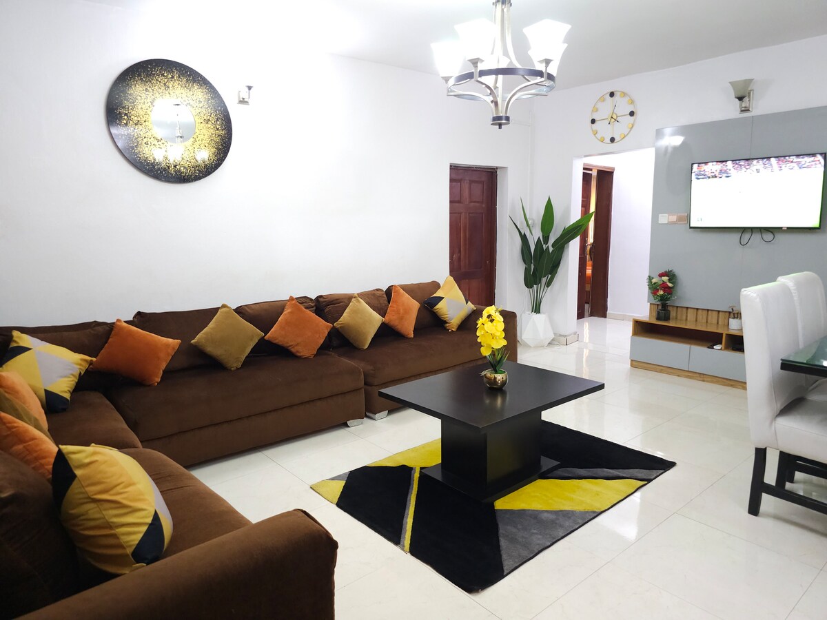 Bienvenue dans notre maison d'inspiration méditerranéenne à Opebi Ikeja, Lagos ! Profitez de l'intimité de toute la maison avec le confort de notre maison de deux chambres avec salle de bain située dans une communauté fermée à quelques minutes de l'aéroport. Idéalement proche des épiceries, des restaurants et des banques, notre espace offre le mélange parfait de commodité et de tranquillité. Profitez de nos équipements tels que le WiFi gratuit et illimité, la climatisation dans les deux chambres, une télévision dans le salon avec Netflix, une cuisine bien équipée.