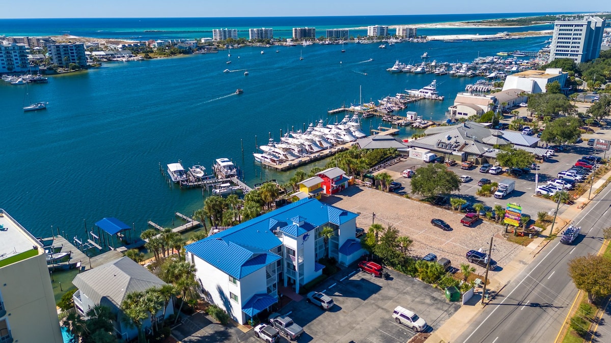 Boutique-hôtel situé au cœur de Destin proposant des hébergements à proximité des meilleurs restaurants et activités au bord de l'eau de Destin. Notre hôtel historique au bord de l'eau est un monument de Destin, offrant aux voyageurs une retraite confortable depuis plus de 50 ans. Nos chambres et hall d'entrée du port offrent une vue panoramique imprenable sur le front de mer en constante évolution. Vous profiterez d'un haut niveau de service dans ce petit boutique-hôtel. Vous ne voudrez pas quitter ce charmant endroit unique en son genre.
