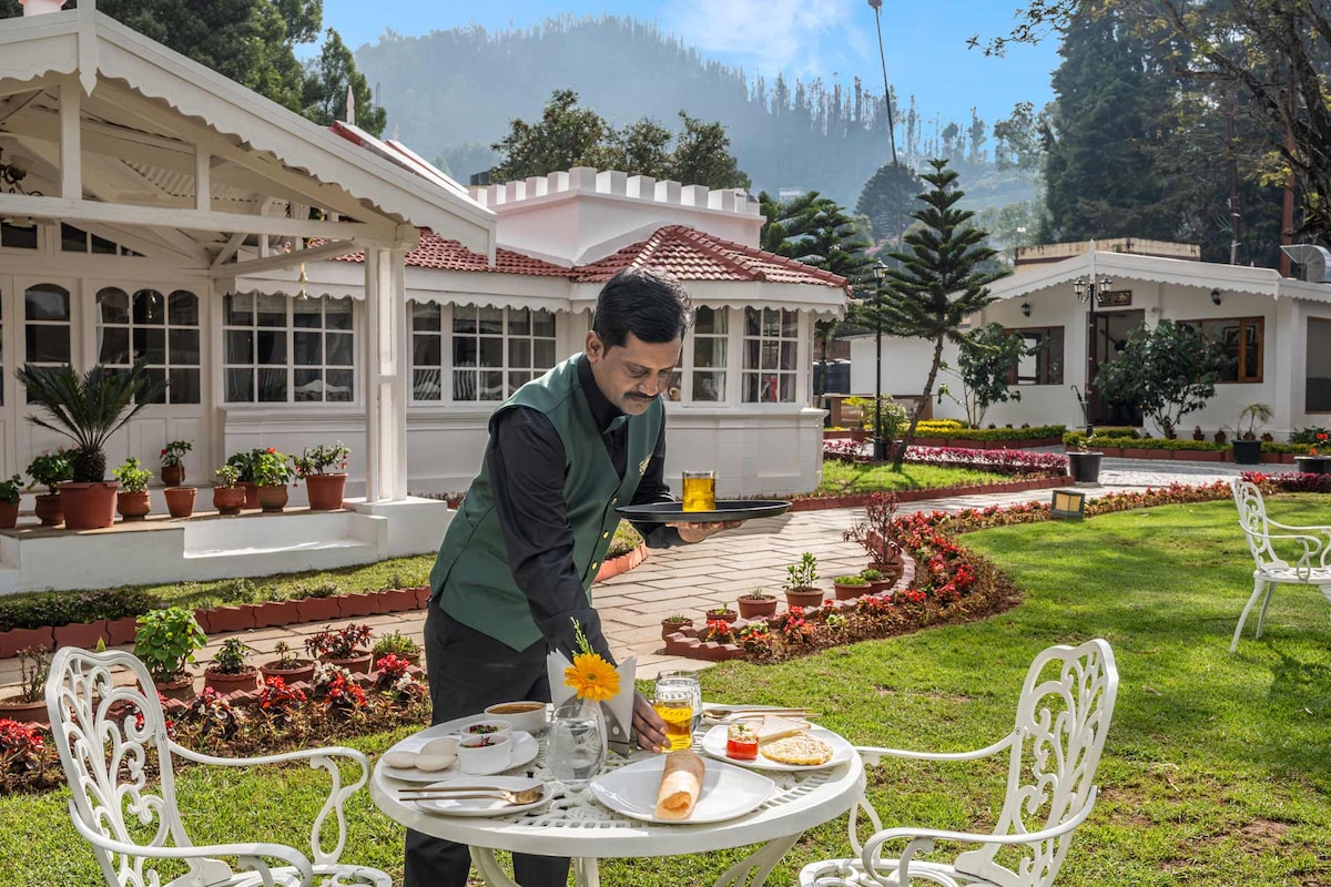 Entrez dans votre propre suite privée avec jardin au Tiverton Bungalow, un superbe refuge colonial s'étendant sur 1,5 acres au cœur d'Ooty. Entouré de fermes et de verdure luxur, ce havre patrimonial allie charme vintage et confort moderne. Profitez d'intérieurs spacieux et esthétiques, de baies vitrées et d'une vue sereine sur le jardin, à quelques minutes des sites incontournables d'Ooty. Savourez des repas exceptionnels au Colonel's Kitchen et au Blooming Garden Café, l'escapade parfaite, centrale mais isolée.