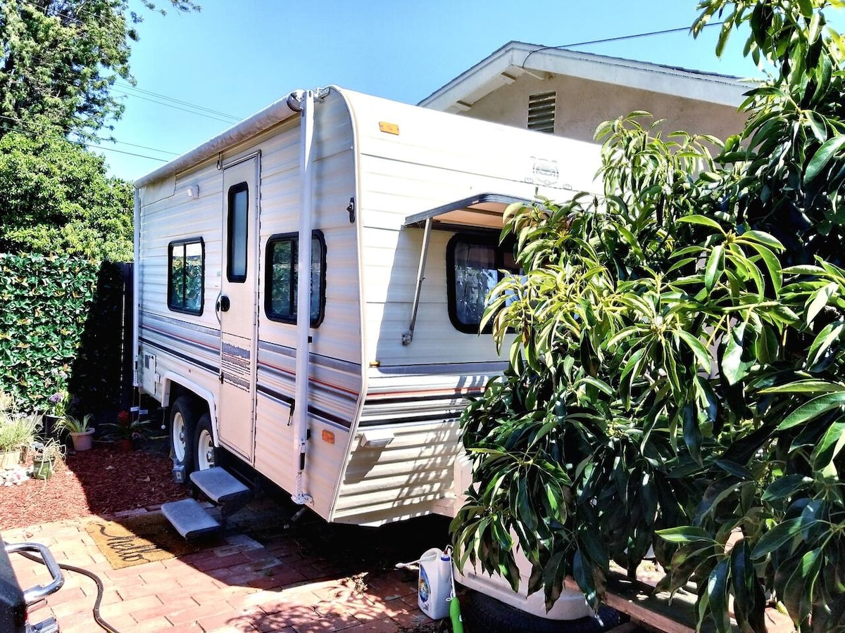 Bienvenue dans la maison florale : le petit camping-car (caravane), parking privé sur un côté de la maison, entrée privée. ✅Stationnaire et entièrement raccordé. À 🎁15 minutes de la plage 🎁35 minutes de Disneyland (l'emplacement exact sera fourni une fois la réservation confirmée) Il vous apporte une expérience de glamping. ⛱️Le camping-car fait 21 pieds de long, est joliment conçu et idéal pour 2 personnes.⛱ Wifi et télévision connectée. ⛱Lit Queen Size, cuisine, toilettes et douche. ⛱1 place de parking. 🚭Pas de drogues ni de cannabis. 🚫Pas d'accès à la buanderie. NON ACCUEILLI, y compris SA