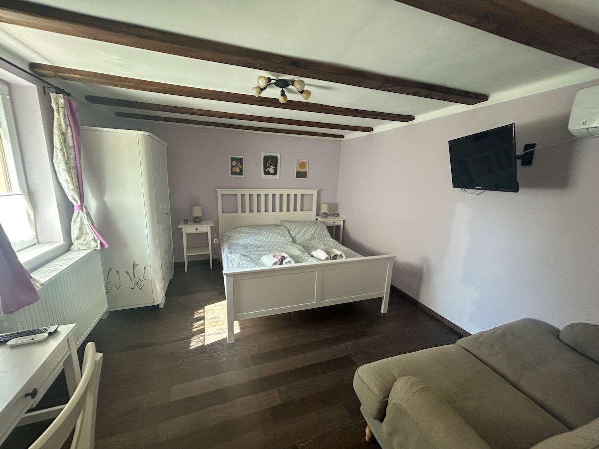 Ici, vous pouvez vraiment vous cacher du monde extérieur. Dans notre petit appartement, vous pouvez vous sentir comme un renard dans sa tanière sûre. Vous pourrez vous détendre dans notre appartement confortable et bien équipé avec votre bien-aimé, ou même avec les enfants, pour vous détendre de la fatigue de la vie quotidienne. La proximité de la forêt assure l'air frais qui imprègne chaque pore. Assis sur la terrasse de l'entrée, vous pouvez écouter sans être dérangé par le bruissement des arbres et faire partie de la vie des animaux de la forêt.