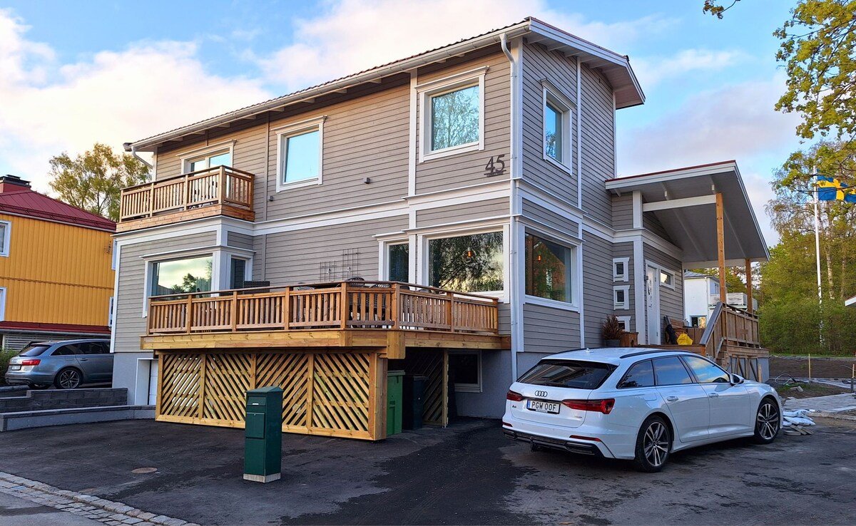 Villa på 168 kvm i ett mysigt område. Stadsbuss till centrum går några hundra meter från huset och vill ni åka bil tar ni er till centrum på ca 10 min. Om man väljer att cykla finns expresscykelväg. Inne finner ni 2 vardagsrum, 2 badrum, tvättstuga, 2 sovrum med dubbelsäng, ett barnrum med barnsäng och en enkelsäng och ett sovrum som just nu agerar lekrum för dom små. På tomten finns stor altan, utemöbler, studsmatta och sandlåda