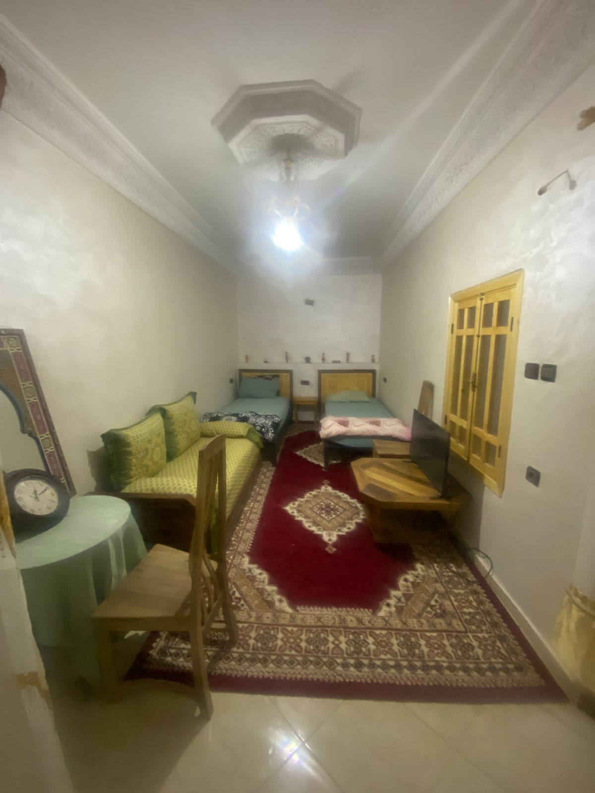 Vous entrez dans une maison de style berbère alliant charme traditionnel et confort moderne. L’architecture authentique se distingue par ses grandes hauteurs sous plafond et ses verrières, laissant entrer une lumière naturelle. À l’intérieur, tout a été pensé pour votre confort : climatisation réversible, wifi, réfrigérateur. À l’extérieur, un jardin verdoyant s’épanouit sous le regard majestueux de l’Atlas, créant une atmosphère unique où tradition et modernité se rencontrent harmonieusement.
