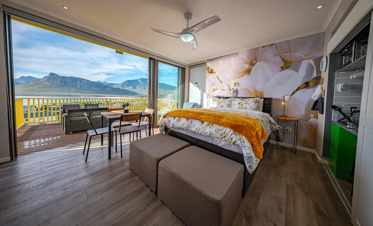 Cette chambre offre l'endroit parfait et confortable pour rendre votre séjour à Hermanus inoubliable. Spacieuse avec des draps et des serviettes impeccables, un lit Queen Size, une kitchenette avec machine à café, un four à micro-ondes, un réfrigérateur et une salle de bain de luxe. Totalement séparée de la maison pour l'intimité avec sa propre entrée. Situé à quelques pas des sentiers de falaises, des sites d'observation des baleines, des restaurants, du terrain de golf, des plages, des sentiers de randonnée, du vélo, etc. Idéale pour les couples, les voyageurs d'affaires ou les aventuriers en solo.