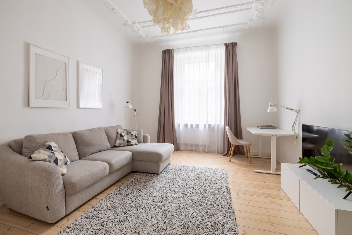 Découvrez le confort moderne dans cet appartement entièrement meublé et bien équipé, situé dans un bâtiment historique Art Nouveau conçu par le célèbre architecte letton Eizens Laube en 1909. Récemment rénové, l'appartement offre une vue imprenable sur la ville depuis le salon et une vue paisible sur la cour depuis la chambre. Parfaitement situé au cœur de la ville, vous serez à seulement 15 minutes à pied de la vieille ville et de la gare centrale. Un magasin d'alimentation à proximité se trouve à seulement 5 minutes de marche.