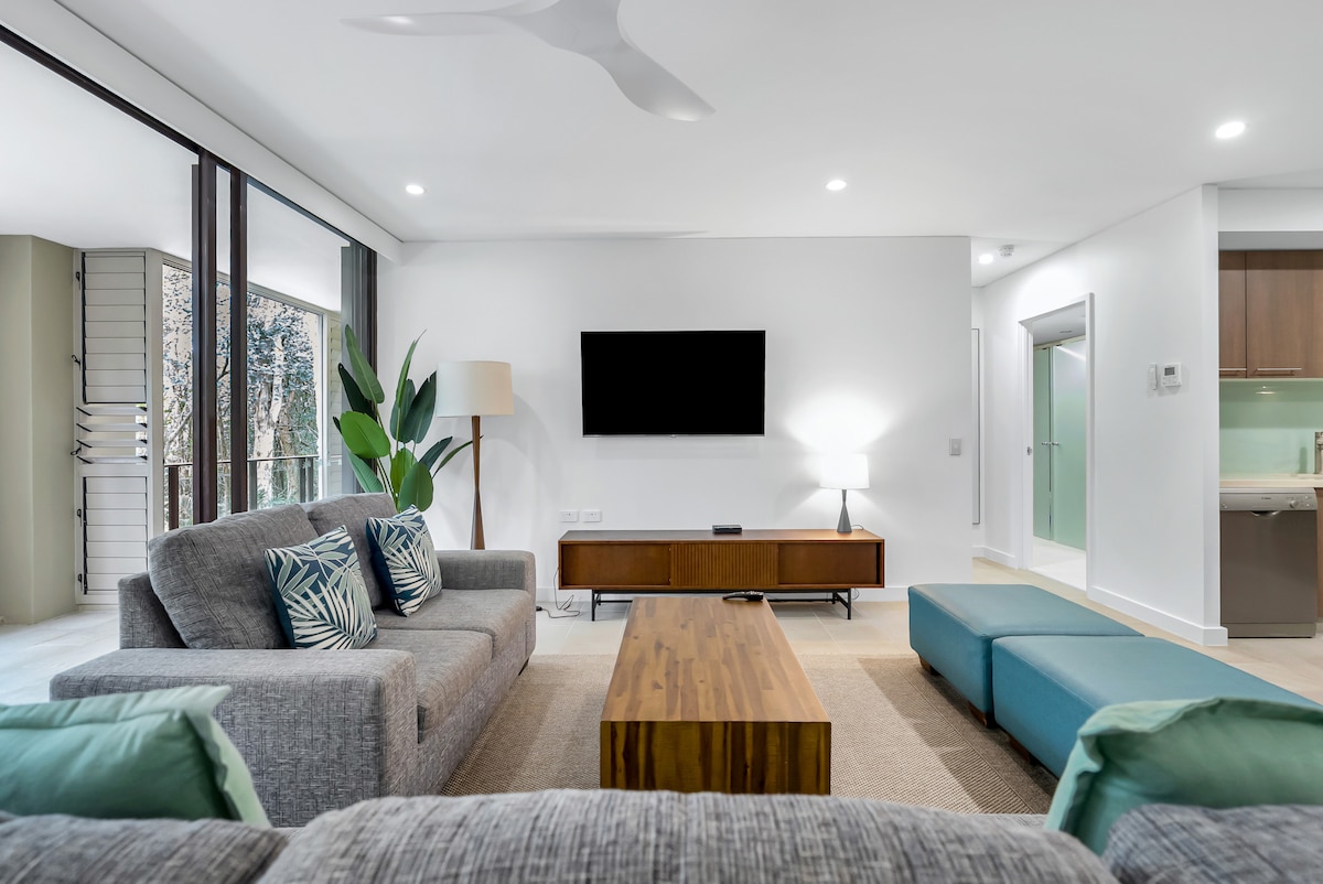 Bienvenue à The Green Place, un appartement spacieux de 2 chambres dans le nord tropical du Queensland. Inspiré par la jungle environnante, notre appartement de vacances unique et luxueux vous transporte sous les tropiques. *Wi-Fi et parking gratuits *Literie flexible. * Entièrement approvisionné : produits de première nécessité, serviettes supplémentaires, fournitures de lessive. * Espace d'entraînement avec vélo sur socle. Situé dans le Lakes Resort, avec accès à 4 piscines et vue sur la cime des arbres depuis le troisième étage (escaliers uniquement). De plus, nous sommes à seulement 10 minutes du quartier des affaires de Cairns et de l'aéroport.