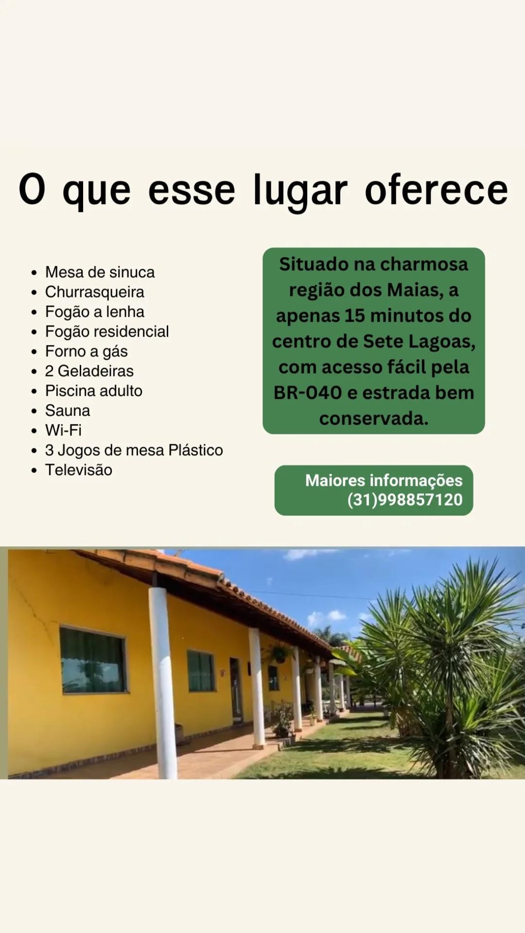Sitio avec piscine à Sete Lagoas - Minas Gerais. Devant le Pousada do Sol Club dans un quartier très calme et sûr. Nous offrons notre location avec un terrain de 3 000 mètres carrés, deux piscines, un terrain de futbol et un volley-ball. Espace barbecue. 5 chambres et 4 salles de bain. 2 chambres avec lit double, 1 chambre avec 3 lits simples et 2 chambres avec 2 lits simples et 5 matelas. Superbe INTERNET dans toute la région. ATTENTION : FORFAITS NOUVEL AN OU CARNAVAL, 5 JOURS MINIMUM !