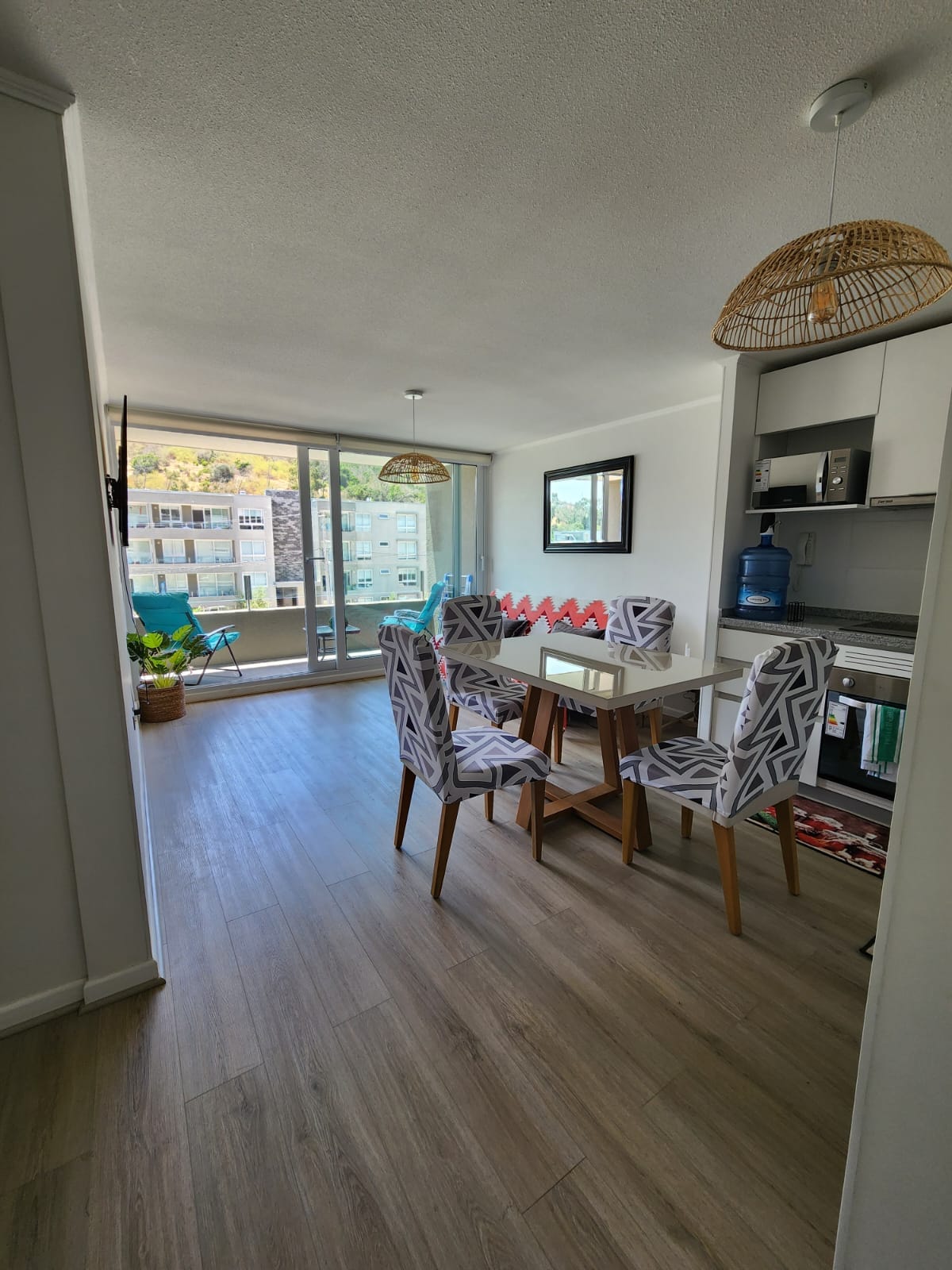 Appartement en copropriété neuf et central à 1 pâté de maisons de la plage et de la place, où se trouvent les meilleurs bars, restaurants, cafés et magasins de Papudo. Idéal pour les familles, les couples et les amis qui veulent séjourner dans un endroit confortable et sûr, avec 2 piscines, des zones de barbecue, une salle de relaxation avec divers équipements. Tous les espaces sont accessibles aux personnes à mobilité réduite. Situé dans un emplacement stratégique et privilégié à quelques pas de la plage, du club de yacht et de la crique des pêcheurs.