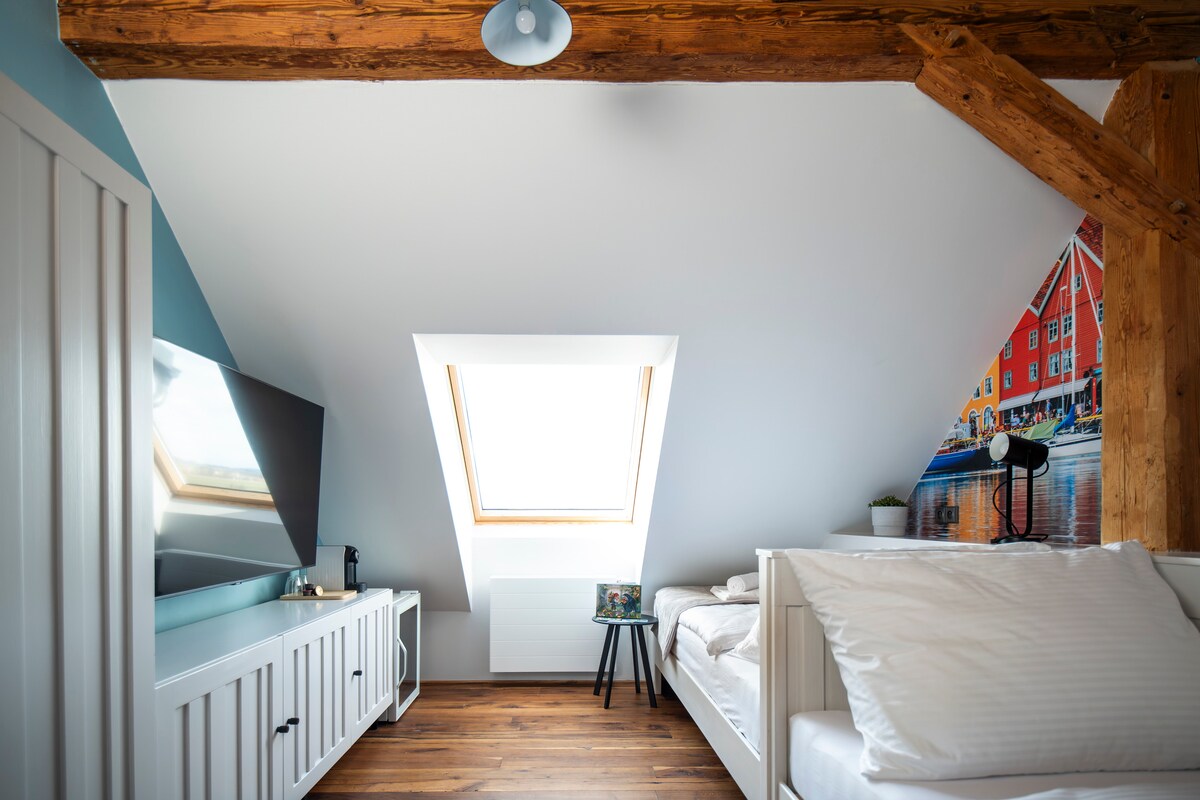 La pension est située dans un quartier calme de la ville, non loin de son centre historique. Elle propose un hébergement confortable dans 9 chambres. Les chambres disposent de leur propre salle de bains et d’une télévision par satellite. Il y a une connexion Wi-Fi gratuite, un parking privé, un local à vélos et la possibilité de recharger les voitures électriques. Chacun de nos clients est important ! La chambre Zuzka est située dans le grenier du bâtiment principal.