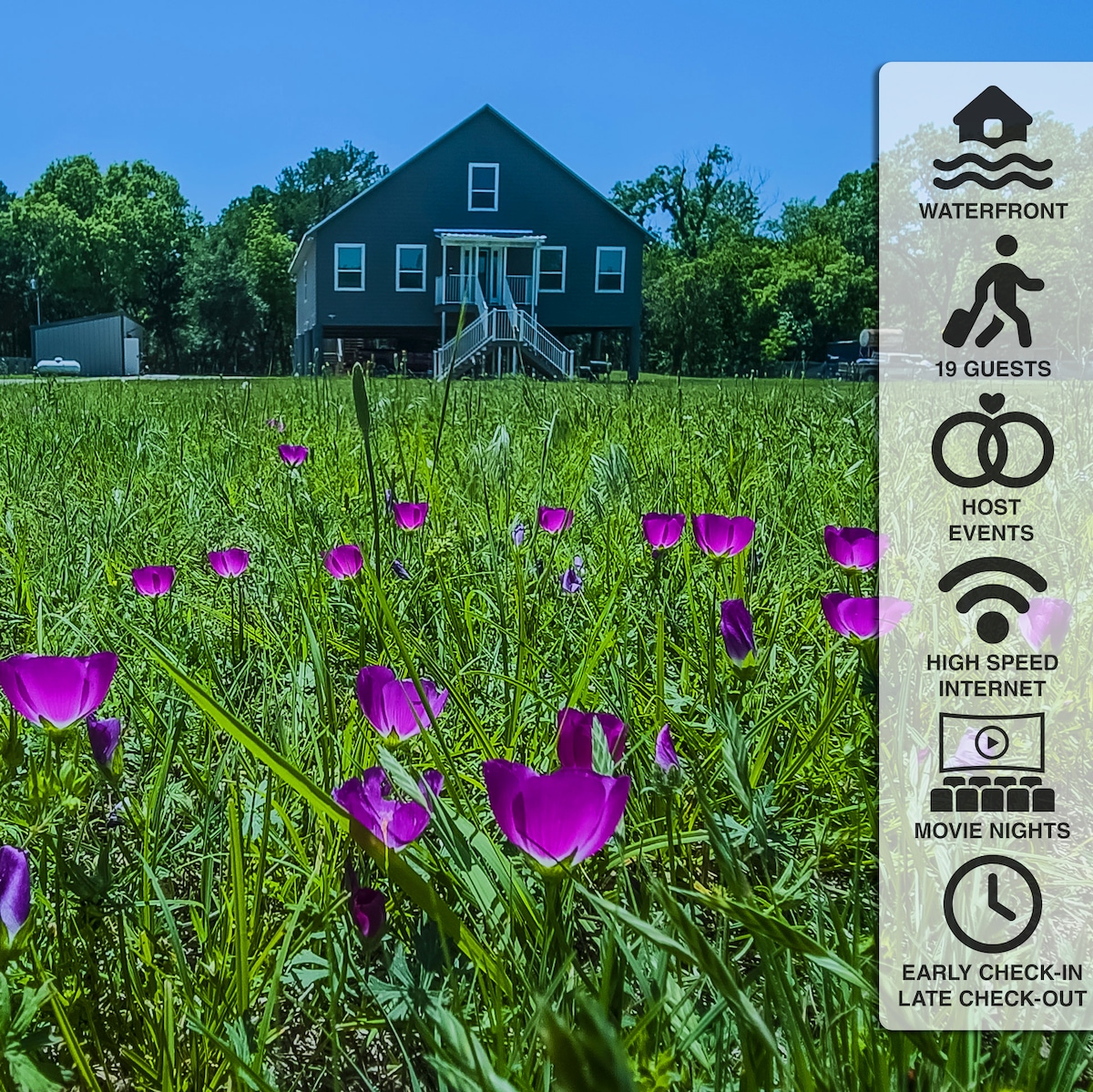Détendez-vous lors de cette escapade unique et tranquille. Situé directement sur la rivière Brazos avec son propre quai privé et accès à la rivière. Profitez du nouveau JACUZZI DANS le patio. Installez-vous confortablement devant notre foyer extérieur avec des sièges pour six personnes dans des chaises adirondack confortables et élégantes. Un pérgola ouvert avec éclairage extérieur pour convos. Entrez avec tout le confort d'un chez-soi et des bonus comme une table de billard qui se transforme en table de hockey sur air, ainsi qu'une salle d'arcade avec des jeux multijoueurs !