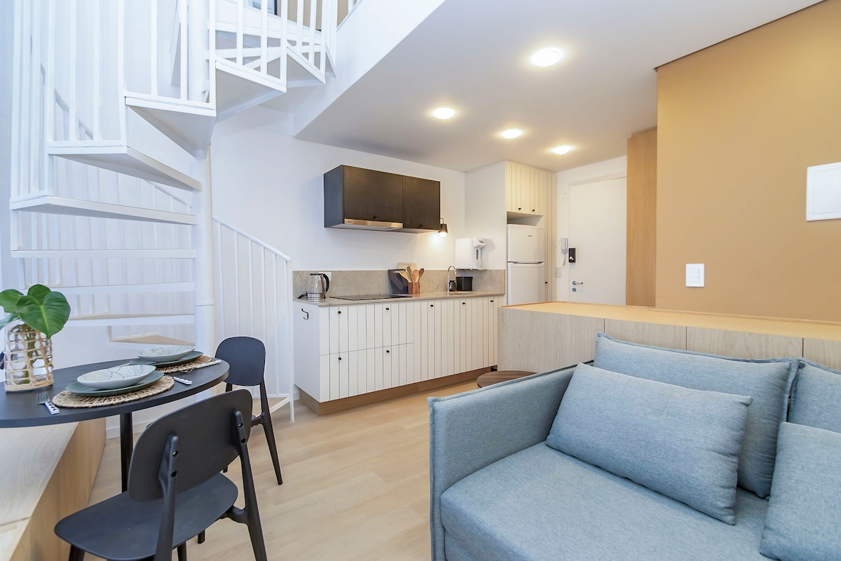 Studio moderne, dans le centre urbain – idéal pour ceux qui recherchent le confort, la praticité et un excellent emplacement à Curitiba. Environnement climatisé, cuisine équipée et télévision connectée : parfait pour les loisirs ou le travail. 🛏️ Il peut accueillir confortablement jusqu’à 4 personnes, avec une literie de qualité. • Piscine chauffée • Salle de sport • D'un sauna ; • Terrasse ; • Blanchisserie (payante) 🚗 Parking disponible dans l'immeuble, 35 R$ par nuit Paiement par PIX à l’hôte.