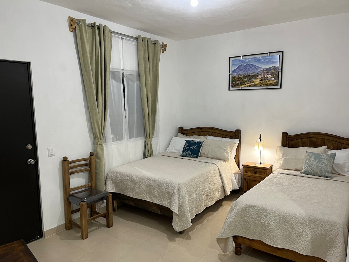 Séjournez dans le centre de Parras au meilleur prix ! 📍 À 1 pâté de maisons de l'Alameda et à 2 de la Plaza del Reloj, avec des restaurants et des attractions à proximité. 🛏️ Chambre privée avec salle de bain, 2 lits doubles, linge de maison haut de gamme, climatiseur, TV, Wi-Fi et minibar. 🍳 Cuisine partagée équipée. ☕ Snacks inclus. 🔐 Self check-in/out avec serrures électroniques. 🧼 Nettoyage inclus. 🌿 Espaces verts. 📲 Réservez maintenant et vivez un Parras Mágico avec nous ! ✨ Confort, emplacement et prix abordable.