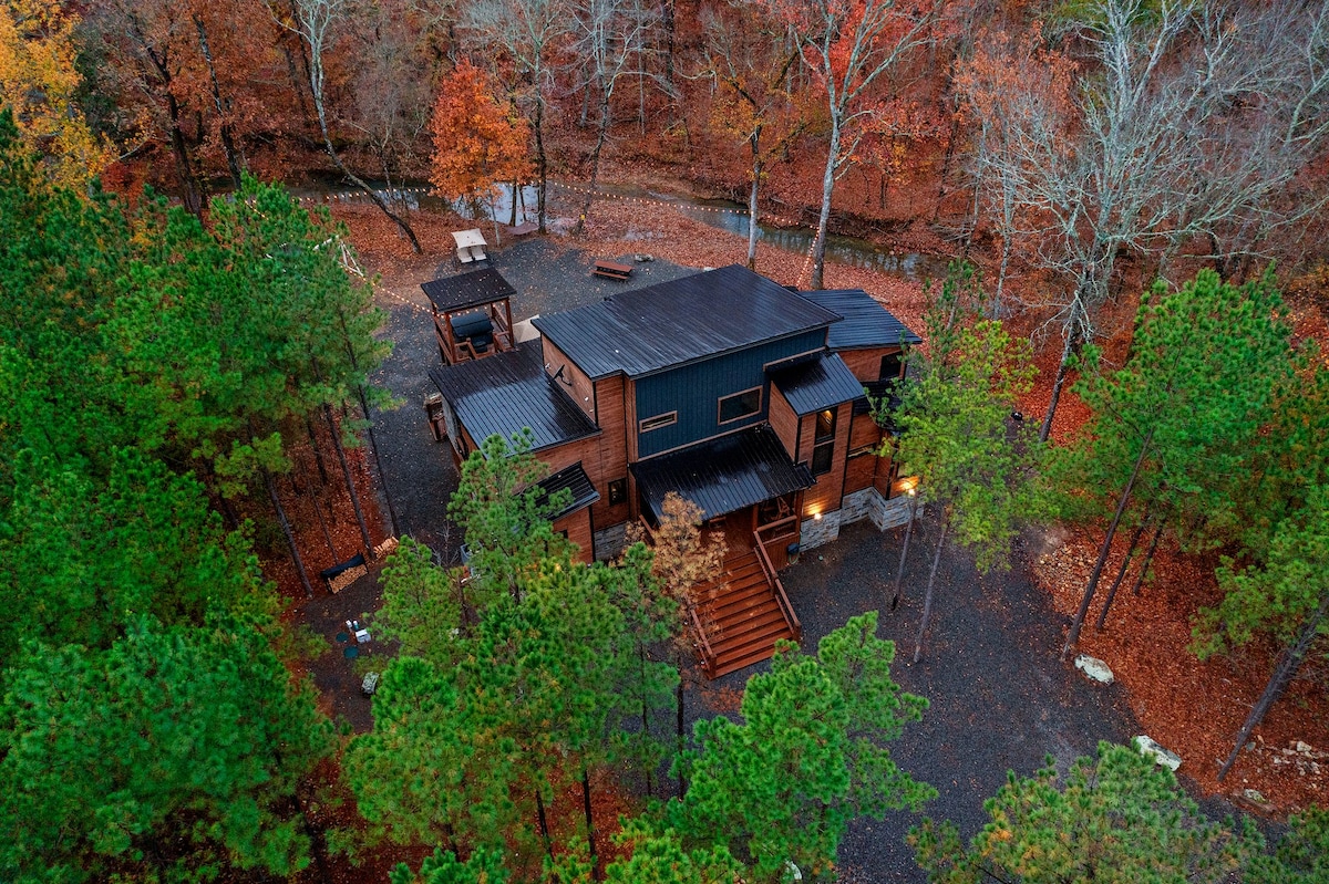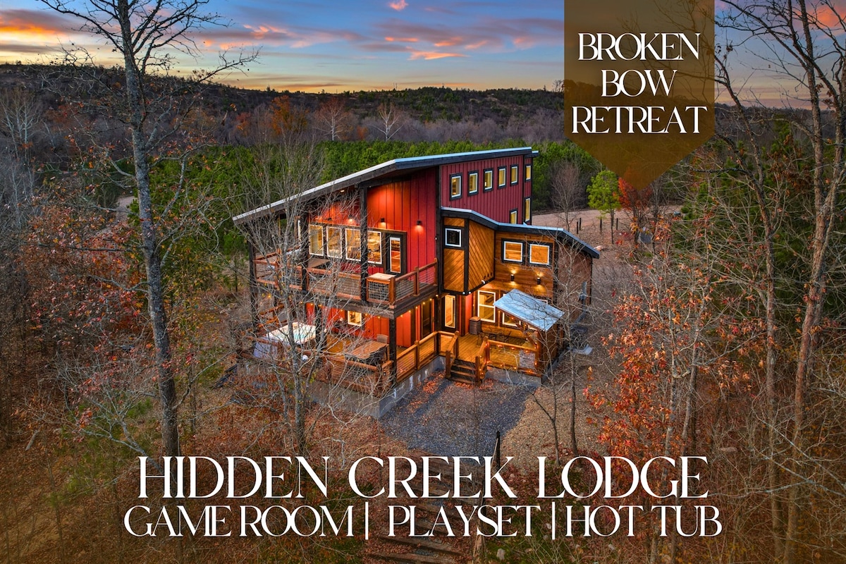 Cabane moderne avec piscine, jacuzzi et loft de jeux